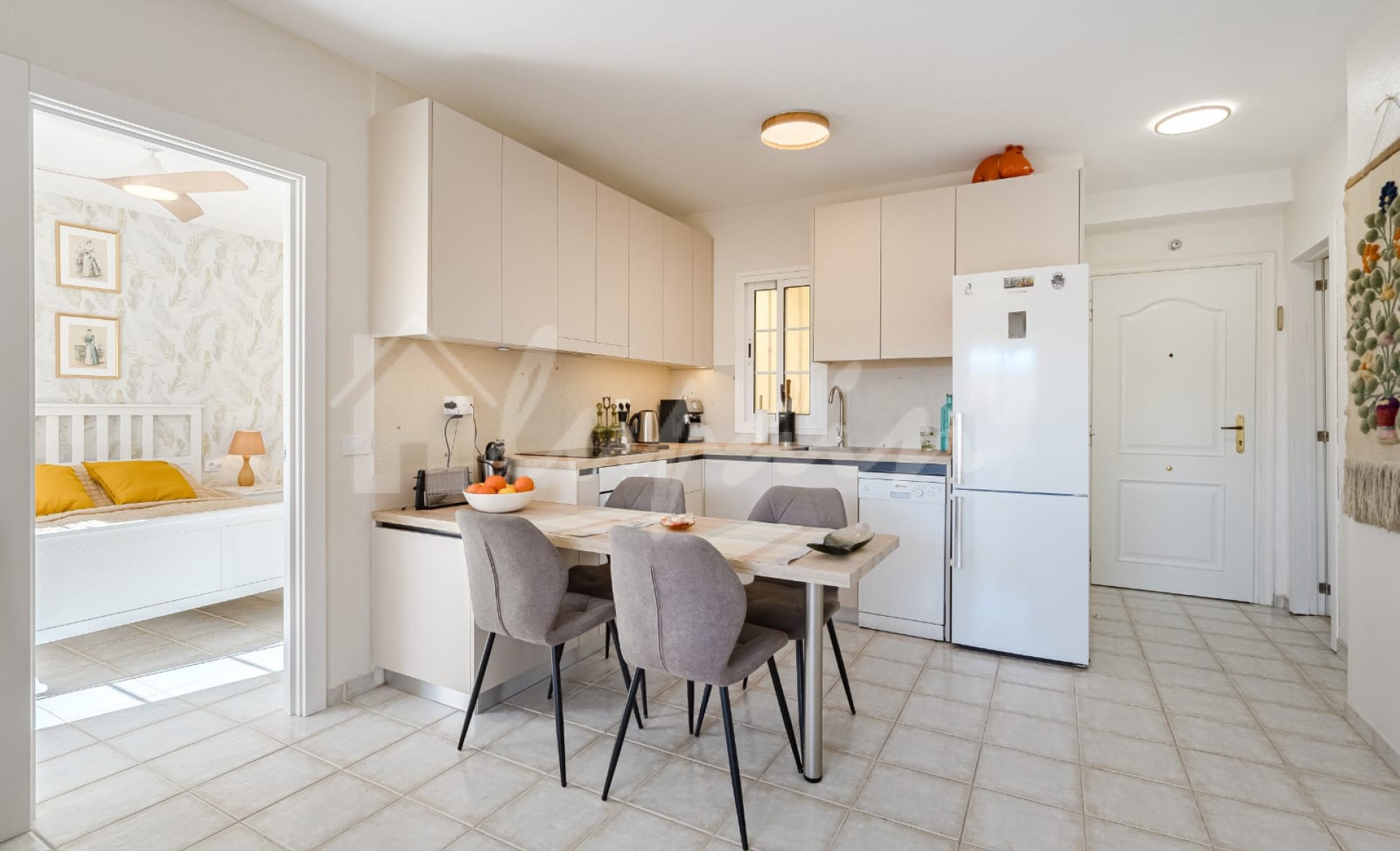 The property comprises 2 bedrooms with fitted wardrobes and 1 bathroom. There is a fully fitted and equipped American-style kitchen and a bright lounge/dining area with patio doors leading onto the terrace with views of the complex and pool. The property is sold fully furnished and includes a closed garage. La Finca complex has two well-maintained communal pools and gardens. Chayofa itself is a charming and quaint village offering an authentic Spanish atmosphere. Just a five-minute drive from Los Cristianos, this is a great place to live, providing an escape from the hustle and bustle of the main resort while allowing you to enjoy it whenever you wish.
