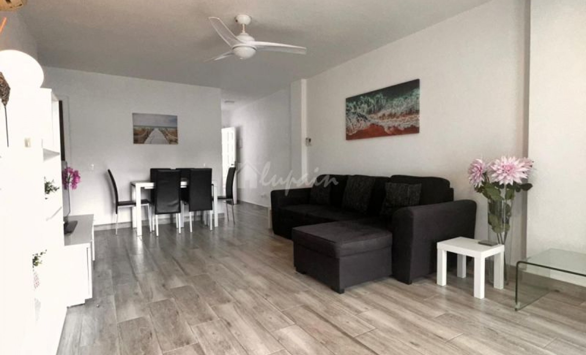 A lovely apartment in Sunset Bay, Torviscas. The property comprises 2 bedrooms with fitted wardrobes and 2 bathrooms. There is a fully fitted and equipped American-style kitchen and a lounge/dining area with patio doors leading onto the terrace with views of the pool, complex, garden, and mountains. The complex has a communal pool and is close to all amenities.