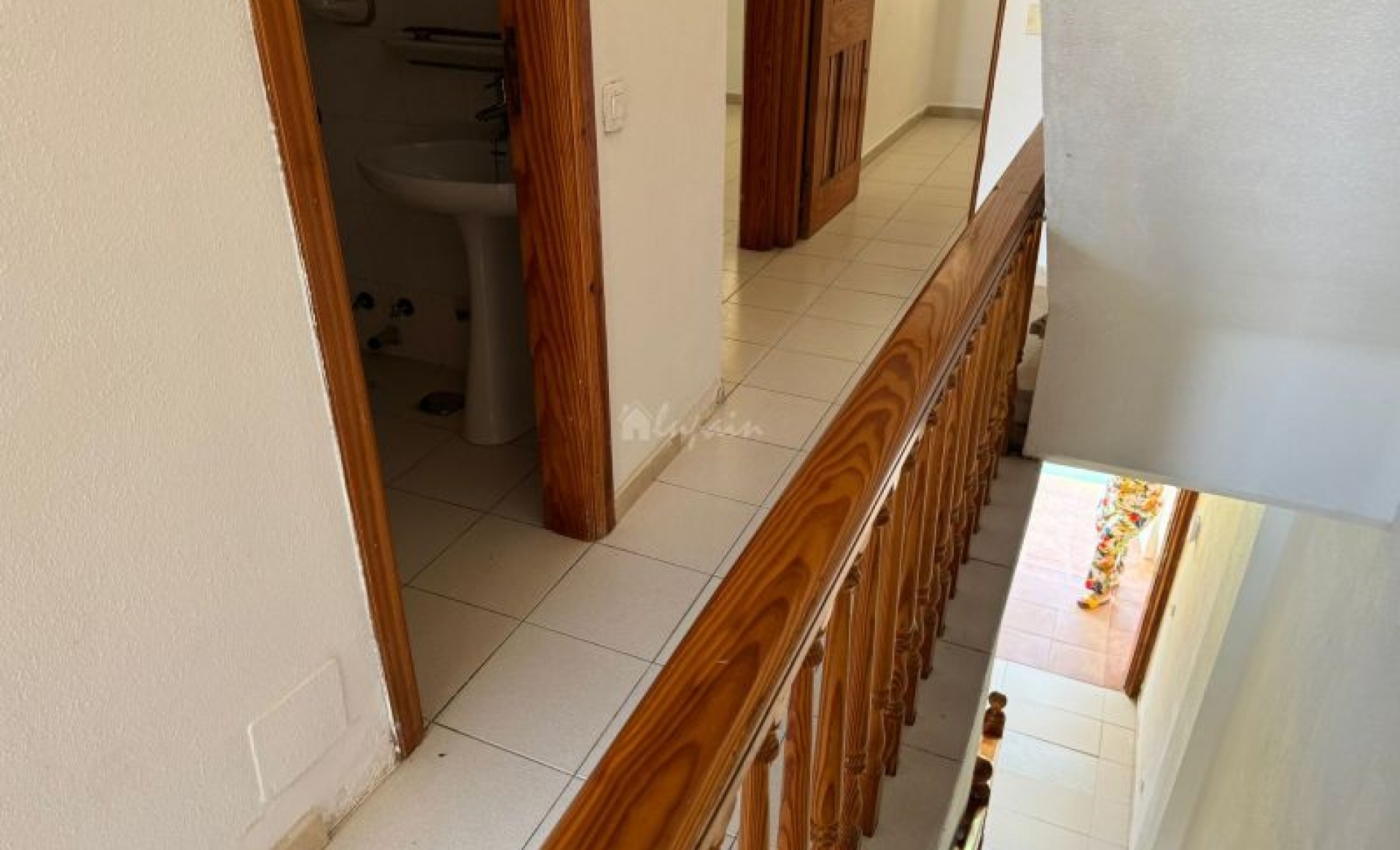 Fantastic semi-detached house in the highly sought-after El Camisón complex in Playa de Las Américas, Arona. This spacious triplex offers a generous total area of 228.45 m², complemented by a charming private garden of 19.11 m². The property comprises a basement floor directly connected to the house with 48.46 m², ideal as a double garage plus a laundry area; a ground floor of 65.98 m² including a kitchen, guest toilet, bright living room, and a terrace with partial pool views and access to the small garden; a first floor of 59.18 m² featuring 3 bedrooms with fitted wardrobes, 2 bathrooms (one en suite in the master bedroom), and a terrace; and an upper floor loft of 54.83 m² with a spacious terrace boasting pool views and glimpses of the sea. The complex is impeccably maintained and perfectly positioned in the heart of Las Américas, just steps from bars, restaurants, medical center, schools, supermarkets, bus stops, shopping centers, and entertainment venues. Please note that the property requires complete renovation, offering the perfect opportunity to customize your dream home to your personal taste.