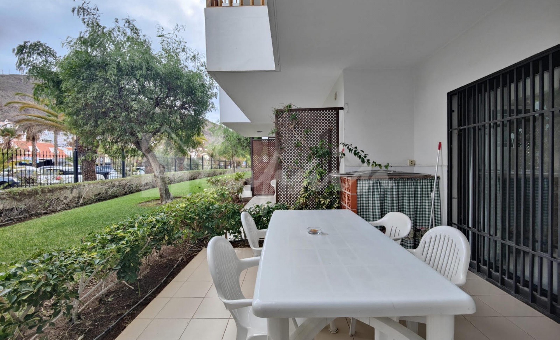 A well-presented apartment in the popular Cristian Sur complex, located in the heart of Los Cristianos. The property features 1 double bedroom with fitted wardrobes and 1 bathroom. There is a fully fitted and equipped American-style kitchen and a bright lounge/dining area with patio doors leading onto a terrace with pleasant garden and street views. Cristian Sur is busy all year round and is arguably one of the most desirable complexes in central Los Cristianos. The complex offers excellent rental potential and features two swimming pools (one heated), a café, supermarkets, car hire services, and a management company on-site. You’ll also find many other amenities nearby, including shops, restaurants, and offices—everything you need to enjoy life in the sun. Viewing is highly recommended.