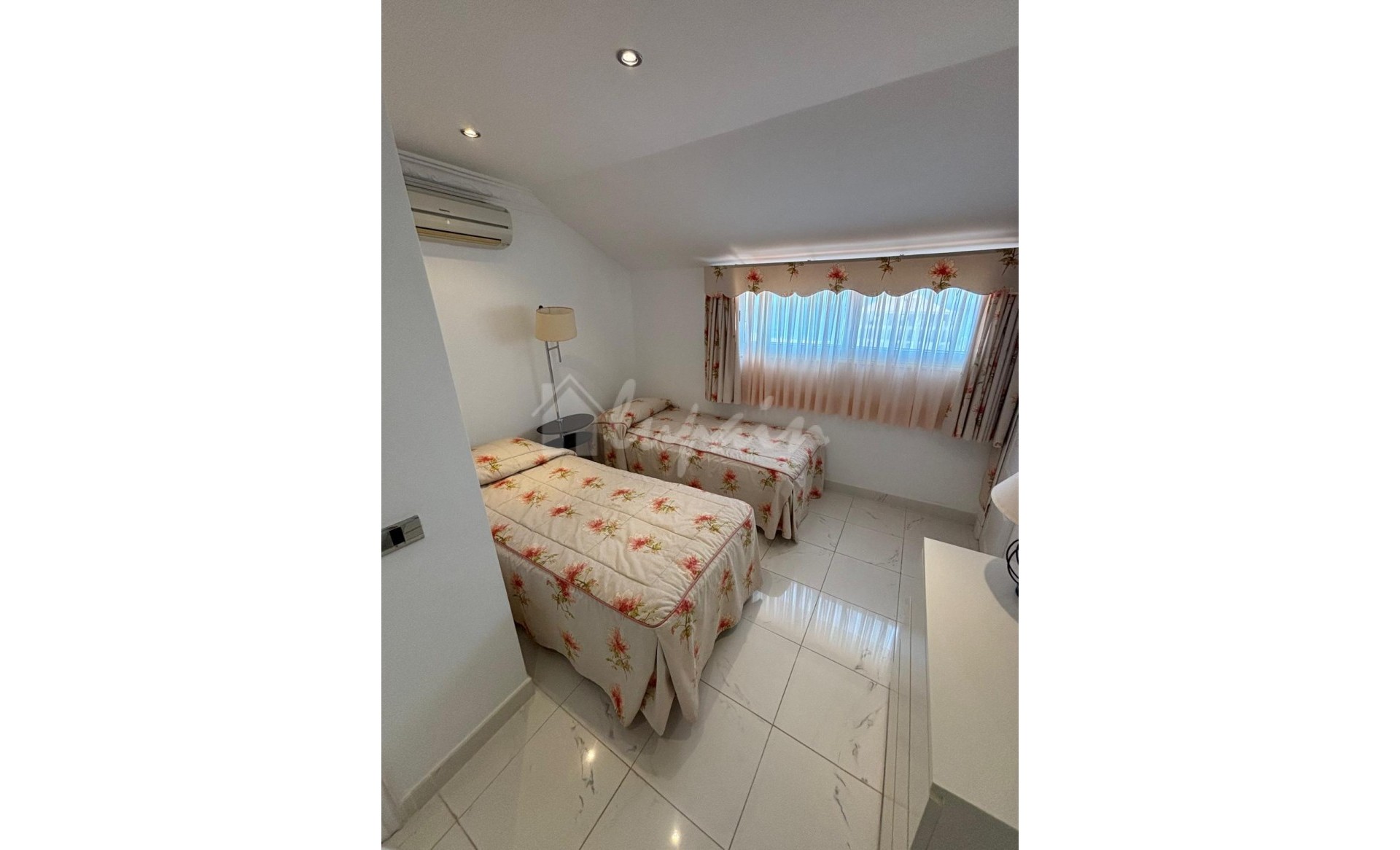 A lovely renovated duplex penthouse apartment in Parque Santiago 2 in Playa de las Américas. The property comprises 3 bedrooms with fitted wardrobes and 2 bathrooms. There is a fully fitted and equipped American style kitchen overlooking the lounge, dining room, with patio doors leading onto one of the terraces offering sea, garden and pool views. Parque Santiago complexes are among the most sought after in the south of Tenerife due to their high demand. Book a visit today to see this lovely apartment.