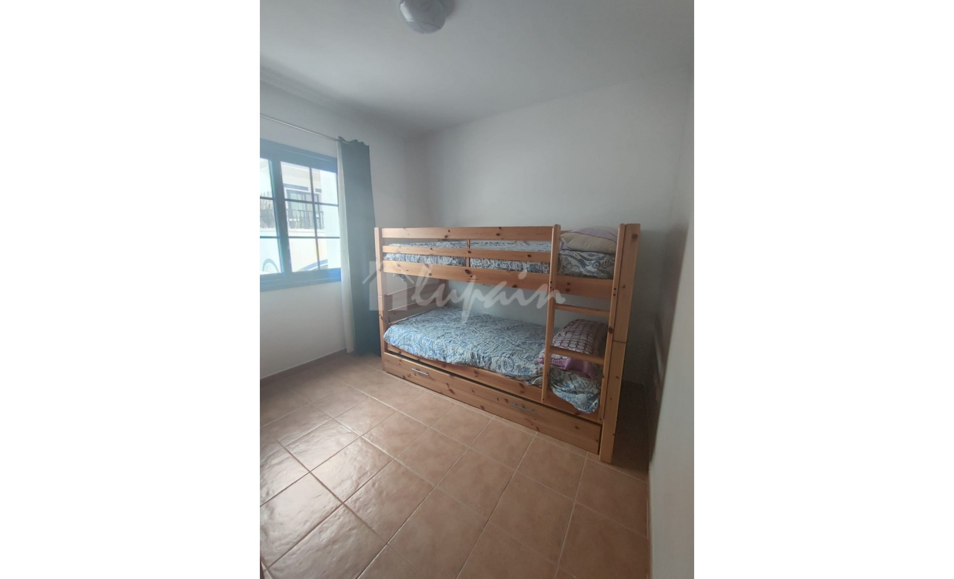 A lovely ground floor apartment in El Faro, Llano Del Camello. The property comprises 2 bedrooms with fitted wardrobes and 2 bathrooms. There is a fully fitted and equipped independent kitchen and a lounge, dining area with patio doors leading onto the terrace and garden area. The complex has 2 communal pools, gardens and tennis courts. A parking space is also included in the sale. The area of Llano Del Camello offers nearby schools, supermarkets, play parks with outdoor gym equipment, petrol stations and is just 5 minutes from the TF1 motorway and Las Chafiras, where you’ll find even more shops and restaurants.