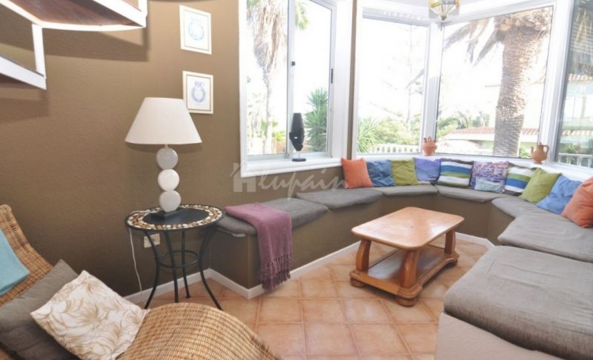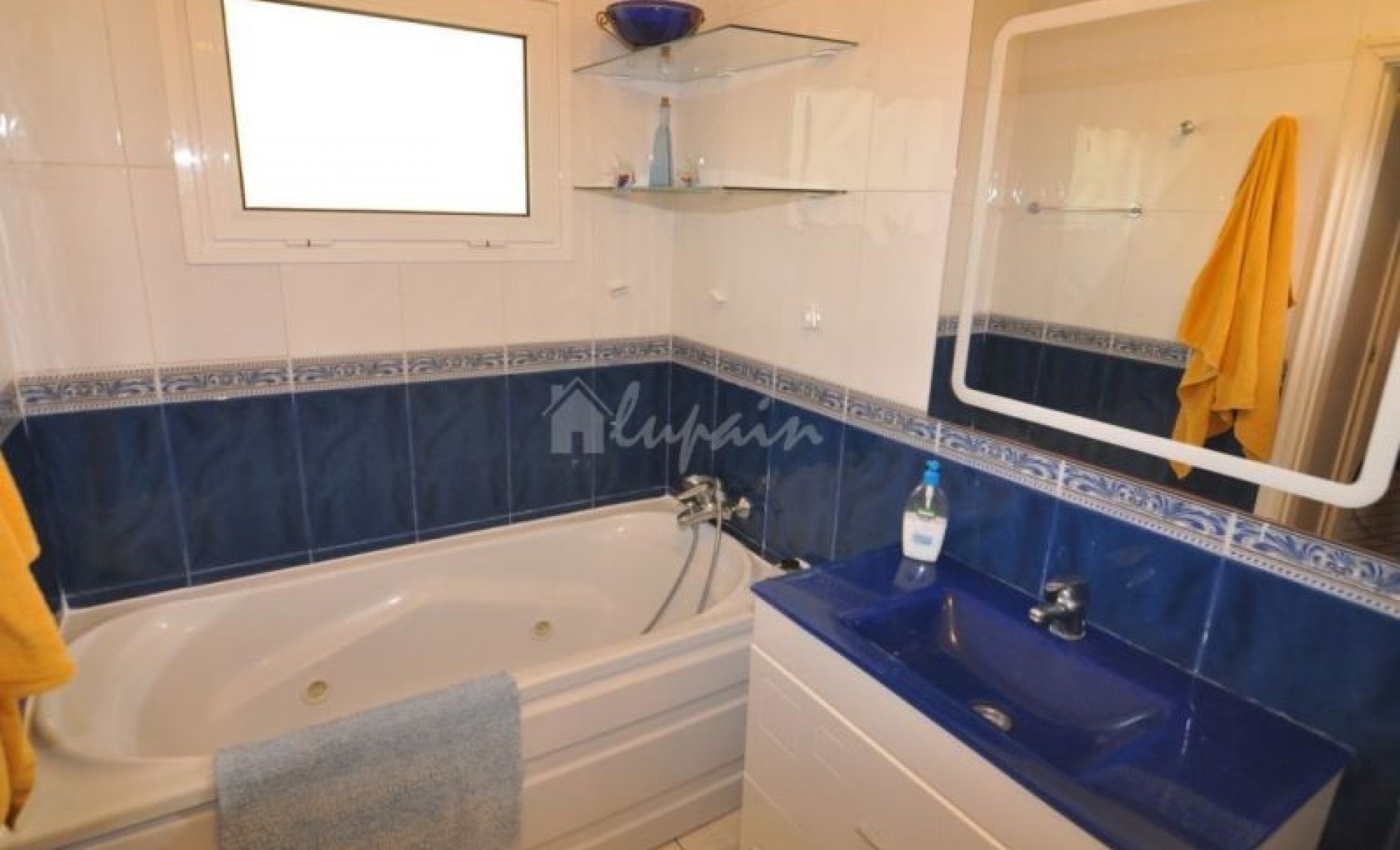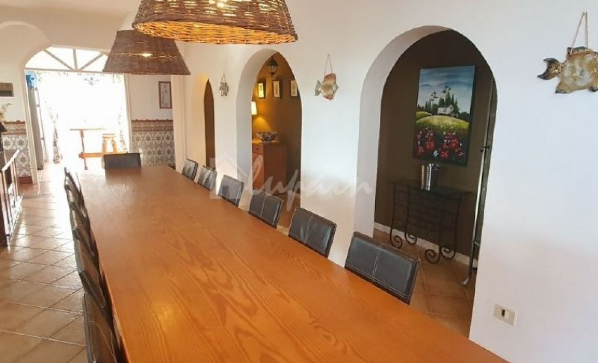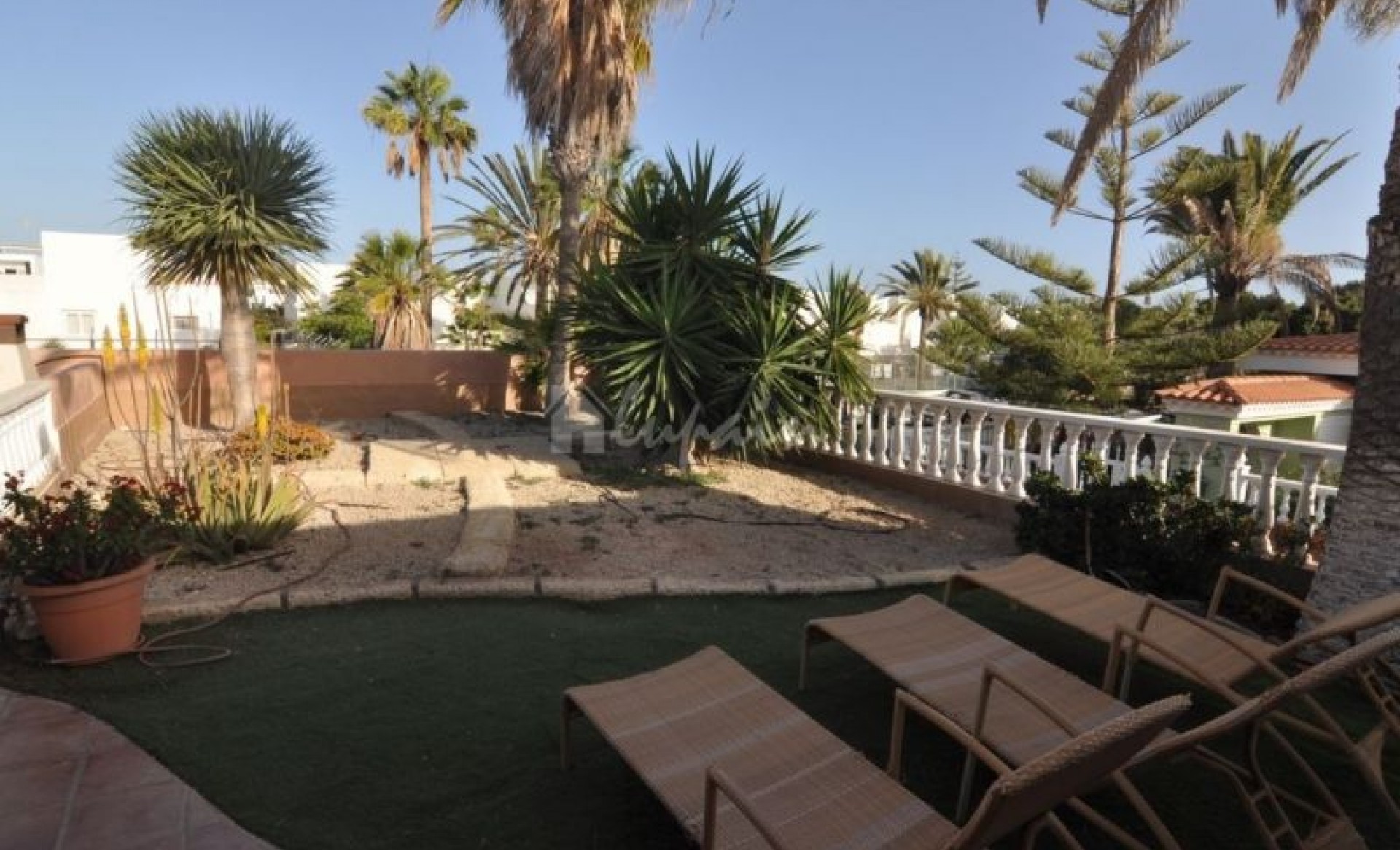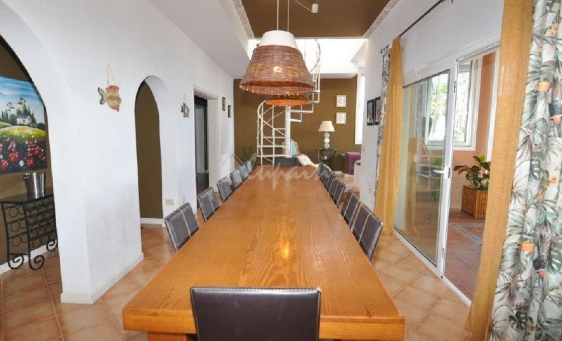 Original villa located in Costa del Silencio, in the residential area of El Trébol. The property features 4 bedrooms with fitted wardrobes (one en suite), 2 bathrooms and a guest W.C. There is a fully fitted and equipped independent kitchen and a very spacious, bright lounge/dining area with a table for 10 people and a stylish spiral staircase. The property also includes a private Finnish sauna for 4 people. Interior space of 300 m² on a 560 m² plot. Partially furnished. It offers a private heated and covered swimming pool, private garage for one car, storage room, laundry area and views of Mount Teide.