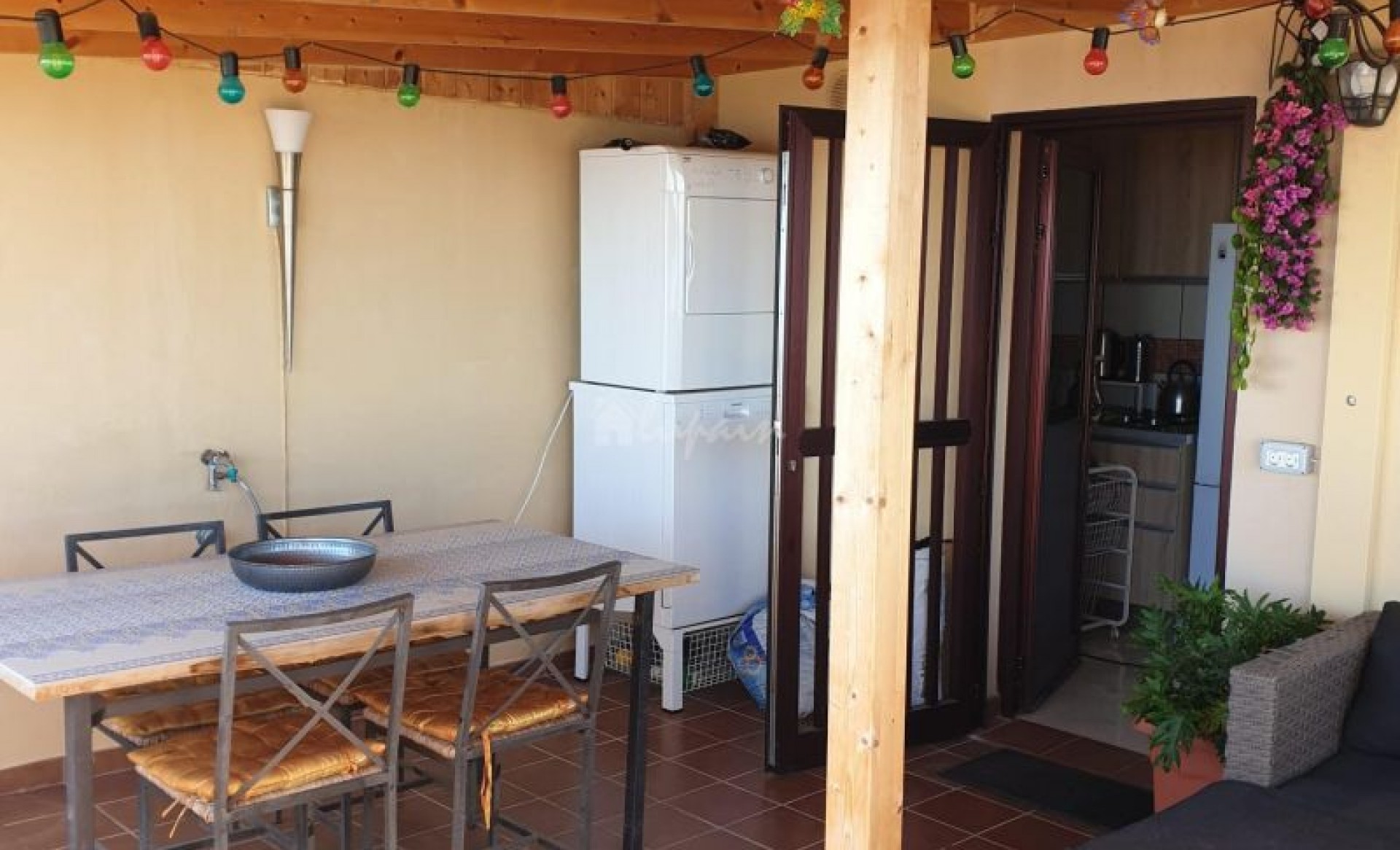 A fantastic corner townhouse with beautiful views. This spacious property features two large roof terraces, one of which is covered with a pergola. There are also four balconies and a large private garage for two cars, including a storage room. The home consists of three bedrooms with fitted wardrobes and three bathrooms. It offers two kitchens, one fully fitted and equipped, as well as a comfortable lounge and dining area. The property also holds a VV license for vacation rentals.