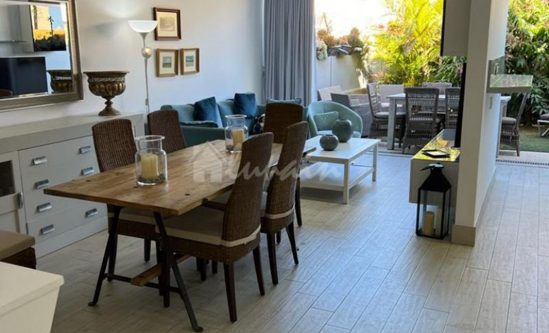 A lovely ground floor apartment in Anayet complex in El Duque. The property comprises 1 bedroom with fitted wardrobes and bathroom. There is a fully fitted and equipped American style kitchen, and lounge/dining area with patio doors leading onto the terrace. There is also a garage space and storeroom included in the sale. The complex has a communal pool and gardens, and is close to all amenities.