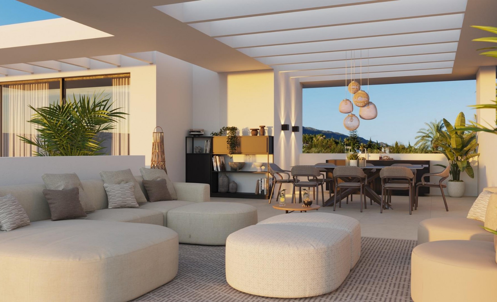 NEW BUILD LUXURY VILLA NEAR ESTEPONA Located in a picturesque and coveted setting amidst nature's splendour, Luxury Villas comprises a collection of 12 ophisticated and exclusive villas boasting contemporary aesthetics.Nestled amongst the tranquil terrain, each villa is eticulously crafted to exude its unique charm, seamlessly blending with the natural environment. These exclusive residences offer a serene and intimate existence, elevating the standard of living to unparalleled heights. The concept behind the development is to combine the marine element that surrounds the villas with the vibrant cyanic colour that reminds us of the vast sky. This perfect blend captures the essence of our vision, where the peaceful charm of the ocean meets the infinite expanse of the sky and the boundless heavens. Situated in an enviable location between Estepona and Marbella, where panoramic vistas adorn the horizon, our exclusive collection of villas is conveniently located near major roadways yet surrounded by the tranquillity of nature.In the desirable area, near La Resina Golf Club on the New Golden Mile, our peaceful retreat offers a chance to enjoy the tranquillity and natural surroundings while still having easy access to the lively attractions of the Costa del Sol.For those fortunate enough to call these villas home, every sunrise will paint the canvas of your day with hues of Mediterranean bliss. Living on Spain's sun-soaked Costa del Sol, means basking in a lifestyle drenched in luxury, rich history, and natural beauty. Beaches, golf courses, water activities and a vast leisure offer make this enchanting area a favoured destination for expats around the world.The Selwo / La Resina area offers a high standard of living, with excellent healthcare facilities, international schools, and a robust infrastructure in a mere 30-minute radius. In the design, light reins as both the protagonist and an essential element. The strategic placement of expansive windows and double-height spaces is meticulously crafted to harness the power of natural light.The alignment of each villa allows for the seamless integration of sunlight throughout the day, illuminating every corner with a soft, ethereal glow. This thoughtful approach not only enhances the aesthetic appeal but also creates an ambience of warmth, openness, and serenity. With meticulous attention to the natural contours of the terrain, every residence offers unobstructed vistas of the boundless Mediterranean expanse. These vistas offer a sanctuary where the soul findssolace in the infinite beauty of the scener. Experience the epitome of contemporary design with our open-plan spaces, seamlessly integrating kitchens as architectural masterpieces, adorned with the finest materials and state-of-the-art appliances. Elevating the concept of both indoor and outdoor kitchens, the designs will be meticulously crafted by Modulnova, a distinguished industry leader celebrated for its artistry, elegance, and expert handling of materials. Be captivated by the grandeur of soaring double high ceilings and breathtaking views that are sure to take your breath away. Indulge in the ultimate architectural masterpiece that will leave you in awe from the moment you enter. At this Luxury Villas, all bedrooms are designed to offer maximum comfort and embrace the Mediterranean. They draw inspiration from 6-star resorts Indulge in a world where luxury knows no bounds. Our villas offer you ample space that can be configured to your liking to elevate your lifestyle. Create a space that caters to your desire for endlessç entertainment.Each of the 12 villas comprising boasts its own distinct personality, ensuring a unique experience for every resident. Despite their individuality, all villas maintain an unparalleled level of finishes and amenities, guaranteeing an exceptional standard of living across the board.