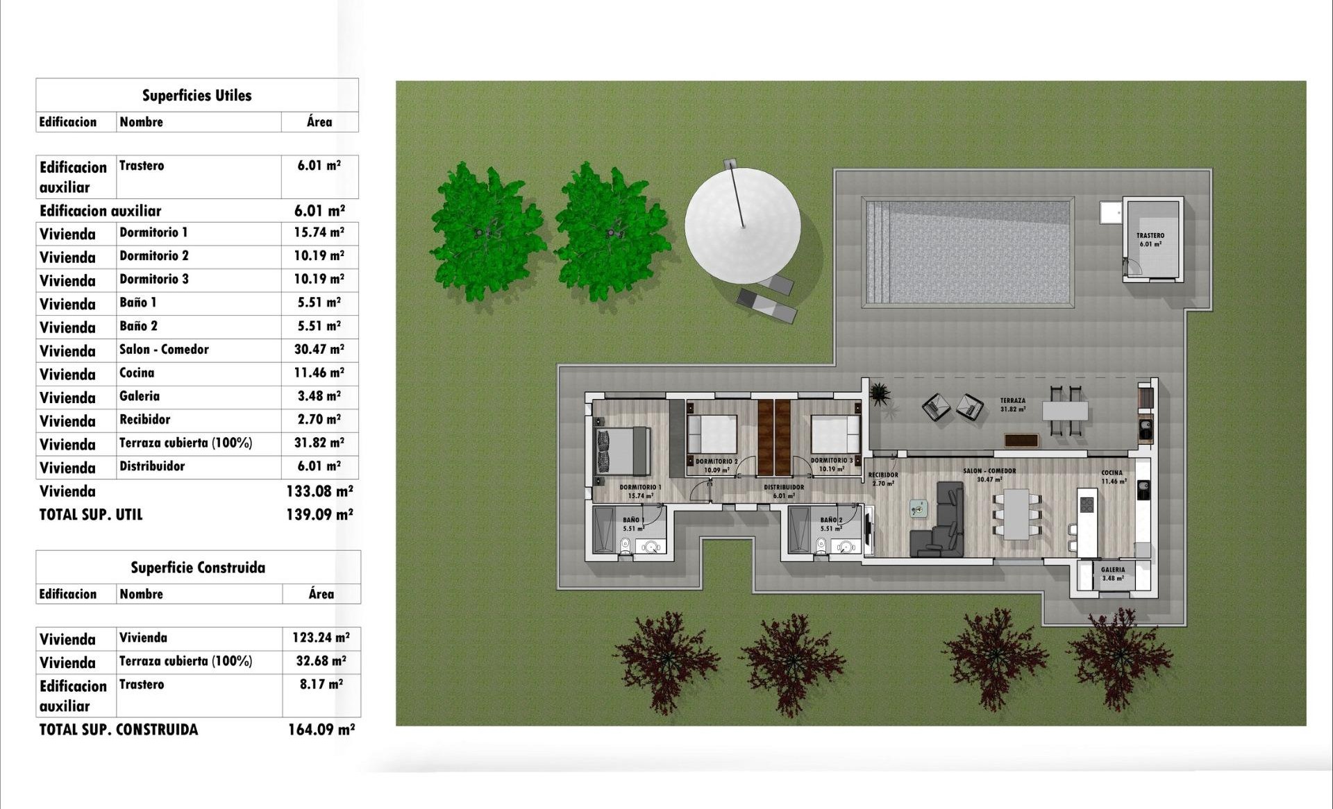 Newly built villas with several models to choose from, with 2, 3 or 4 bedrooms, on one or two floors and built with slabs or with a structure: depending on the model and the plot chosen, the exact price will be calculated. All the villas are built on rustic plots of over 10,000 m2, of which around 2,500 m2 will be fenced off. The villas have an open-plan kitchen with living room, built-in wardrobes, private swimming pool, porch, storage room and outdoor parking space. There are several plots to choose from. The price is based on a plot priced at £77,500 (if another plot is chosen, the difference will be paid or credited according to the price of the plot). Self-build project, delivery in approximately 12 months from the granting of the licence. If you are looking for a quiet environment, close to typical Spanish villages away from tourist crowds, surrounded by mountains, with a very large plot and about 30 minutes from the sea, this is your home. Aspe is a typical Spanish village with all the amenities for everyday life, surrounded by mountains and with several natural areas nearby where you can go hiking or mountain biking. Located 25 km from the beach, 9 km from Elche and about 20 km from Alicante airport.