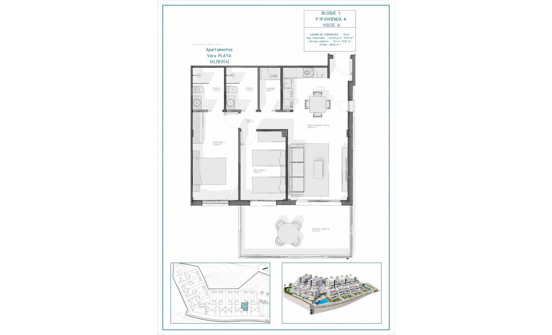 Contemporary Living in Pueblo Salinas, Just 2 km from the BeachIntroducing a stunning new residential development located in the sought-after area of Vera Playa, within the exclusive Pueblo Salinas urbanization. This modern complex offers a privileged lifestyle just 2 km from the beaches of Vera (Almería), boasting spectacular sea views and a peaceful Mediterranean environment ideal for year-round living or holiday enjoyment. Elegant Homes with Modern Comfort and StyleThis new development consists of 60 high-quality apartments distributed across 5 low-density blocks, with only two properties per floor. Choose between 2 or 3-bedroom layouts designed with functionality, comfort, and style in mind. Options include: Ground floors with private gardensMiddle-floor units with spacious terracesTop-floor penthouses with large solariums including summer kitchen and pergola with solar panels. All properties feature: Open-plan fully equipped kitchens with integrated fridge, dishwasher, induction hob, oven, microwave, and extractor fanBright living spaces and LED lighting throughout (except bedrooms)Motorized aluminum shutters in bedroomsBathrooms with modern finishes, including towel heaters, shower trays with glass screens and built-in furniturePre-installation of ducted air conditioningAerothermal system for efficient hot water productionSecurity entrance door Exceptional Community AmenitiesResidents will enjoy access to a wide range of amenities designed to enhance comfort and leisure, including: Two outdoor swimming pools perfect for the summer monthsOne indoor heated pool for year-round usePrivate parking space and storage unit included with every propertyPre-installation for electric vehicle charging at parking areas Prime Location with Excellent ConnectionsVera Playa is a popular coastal destination known for its wide sandy beaches and relaxed lifestyle. The development’s location provides easy access to essential services and attractions: Beach: 2 kmDesert Springs Golf Resort: 8 kmVera town center: 5 kmGarrucha marina and restaurants: 6 kmParque Comercial Mojácar: 10 kmAlmería Airport: 85 km (1 hour by car) Make Vera Playa Your New HomeWhether you're looking for a permanent residence, a holiday retreat, or a smart investment, these new build apartments offer unmatched value in one of the most desirable areas of the Costa de Almería. Contact us today for more information and to schedule your visit.