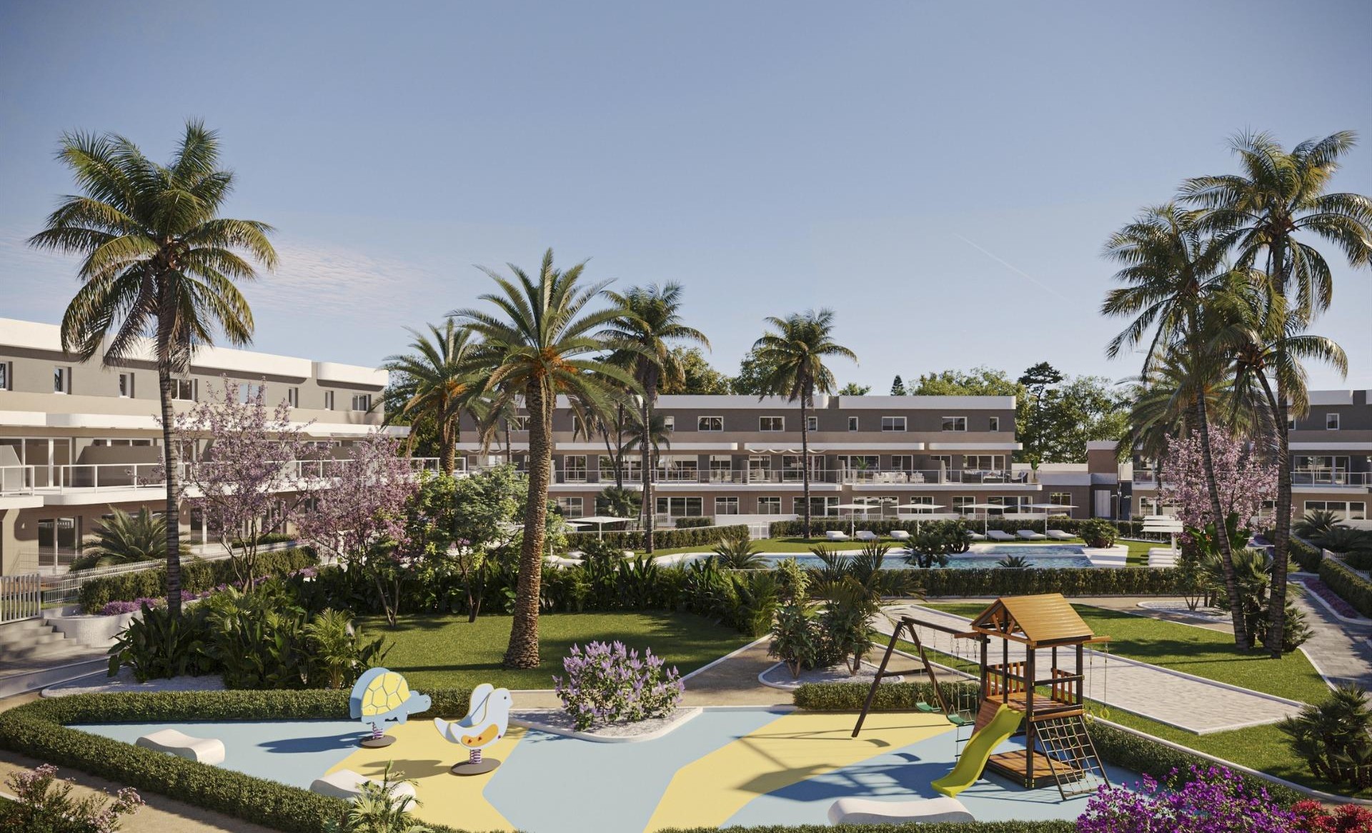 New Build private development of beautiful 2 and 3 bedrooms apartments with large terraces overlooking the nice communal area, combines the tranquil area of the Alenda Golf Course with a more lively beachfront nightlife easily accessible in just 15 minutes. All apartments include fully fitted kitchens equipped with a vitroceramic hob, extractor fan and an oven, hot water by aerothermal heating, smooth white paint on walls and ceiling, PVC doors and windows with double glazing. They also have air conditioning/heating units, and complete fitted wardrobes in all the bedrooms. All properties has a private parking, communal swimming pool for adults and children, and multipurpose room. Ground floor have a private garden, while the duplex apartments have large terraces. Perfect for all day dining, the terraces are either surrounded by the spectacular Sierra de las Aguilas Mountains, or the stunning view over the golf course. Includes: Underground parking, Exterior Parking, Storeroom, Communal swimming pool, Lift, Communal garden, Private garden, Air conditioning, Heating, Aerothermy, Solar thermal panels, LED spotlights, Double glazed windows, Pre-installation for electric vehicle. Energy certification: A. The historical village of Monforte del Cid is also nearby offering a selection of local amenities.Within the Alenda Golf development residents will have access to a small supermarket, restaurant and bar, clubhouse, fitness centre and paddle tennis courts. Due to its prime location, it is just 15 minutes from the golden beaches of Alicante, Alicante Airport and the town of Elche. Thanks to the lovely year-round climate and amazing facilities, Costa Blanca is a perfect area to not only play golf but to also invest in a golf property. There are over 15 golf courses nearby, such as the El Patio Golf Club which is just 3 kilometres from Alicante and designed by Severiano Ballesteros, and the Font del Llop Golf Club, near Alenda.The Alenda Golf Club, is an 18-hole course with a separate pitch & putt.