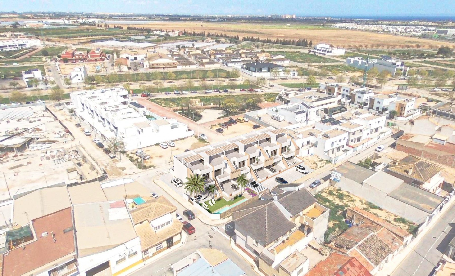 Contemporary Living in the Heart of Costa BlancaWelcome to a boutique residential complex of 12 new build bungalows located in Pilar de la Horadada, a vibrant coastal town at the southern tip of the Costa Blanca. This prime location offers the perfect blend of tranquil Mediterranean living and convenience, with all essential services, shops, restaurants, and amenities within walking distance. The beautiful sandy beaches of Torre de la Horadada and Mil Palmeras are just 3 km away, ideal for relaxed beach days or water sports. Choice of Ground Floor or Top Floor BungalowsThis exclusive development offers two types of modern homes to suit your lifestyle: Ground floor bungalows with 3 bedrooms, 2 bathrooms, and large private front and rear terraces with direct access to the communal pool and gardens.Top floor bungalows with 2 bedrooms, 2 bathrooms, and an expansive private rooftop solarium, complete with a summer kitchen, pergola, and guest toilet. All homes feature bright open-plan living areas, fully equipped kitchens, ducted air conditioning, and private parking. Bedrooms include built-in wardrobes and the bathrooms benefit from underfloor heating for added comfort. Premium Features for Modern Mediterranean LivingThe homes are designed with high-quality finishes and practical features, including: Armoured front door with aluminium finishElectric shutters in living room and bedroomsAerothermal hot water systemKitchen appliances from BALAY or equivalentRooftop solariums with artificial grass, outdoor shower, lighting, and full summer kitchen with dishwasher, small fridge, induction hob, and extractor. Strategic Location with Excellent ConnectivityPilar de la Horadada is well connected to major points of interest along the Costa Blanca and Costa Cálida: Beaches (Torre de la Horadada / Mil Palmeras) – 3 kmLo Romero Golf Course – 6 kmCorvera Airport (Murcia) – 40 kmAlicante Airport – 55 kmZenia Boulevard Shopping Centre – 14 kmMarina of San Pedro del Pinatar – 11 km Your Ideal Home in the SunWhether you’re looking for a holiday escape, a year-round residence, or a rental investment, these bungalows in Pilar de la Horadada offer excellent value and quality in one of the Costa Blanca’s most desirable towns. Contact us today to arrange a viewing or request more information!