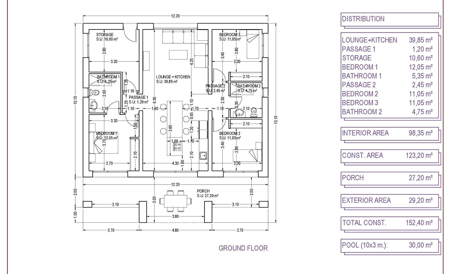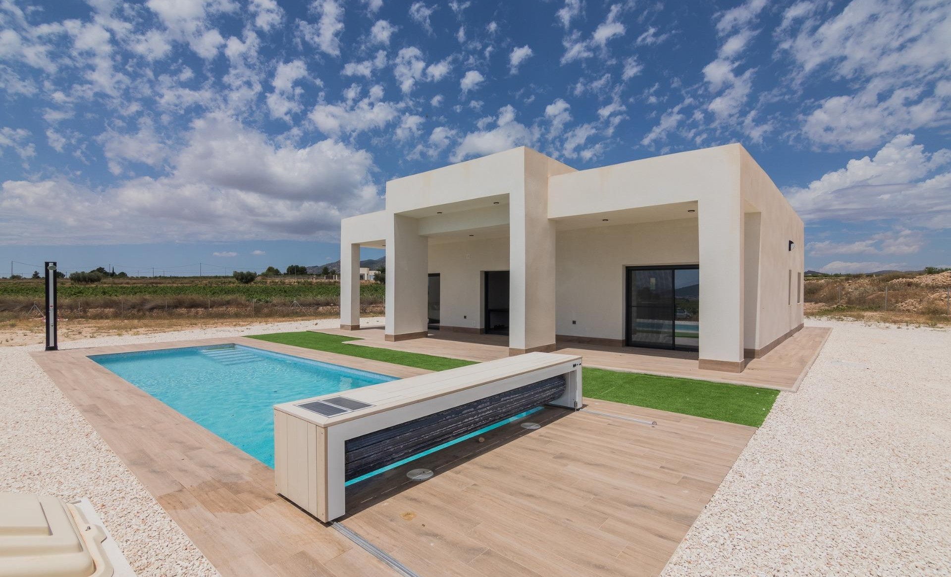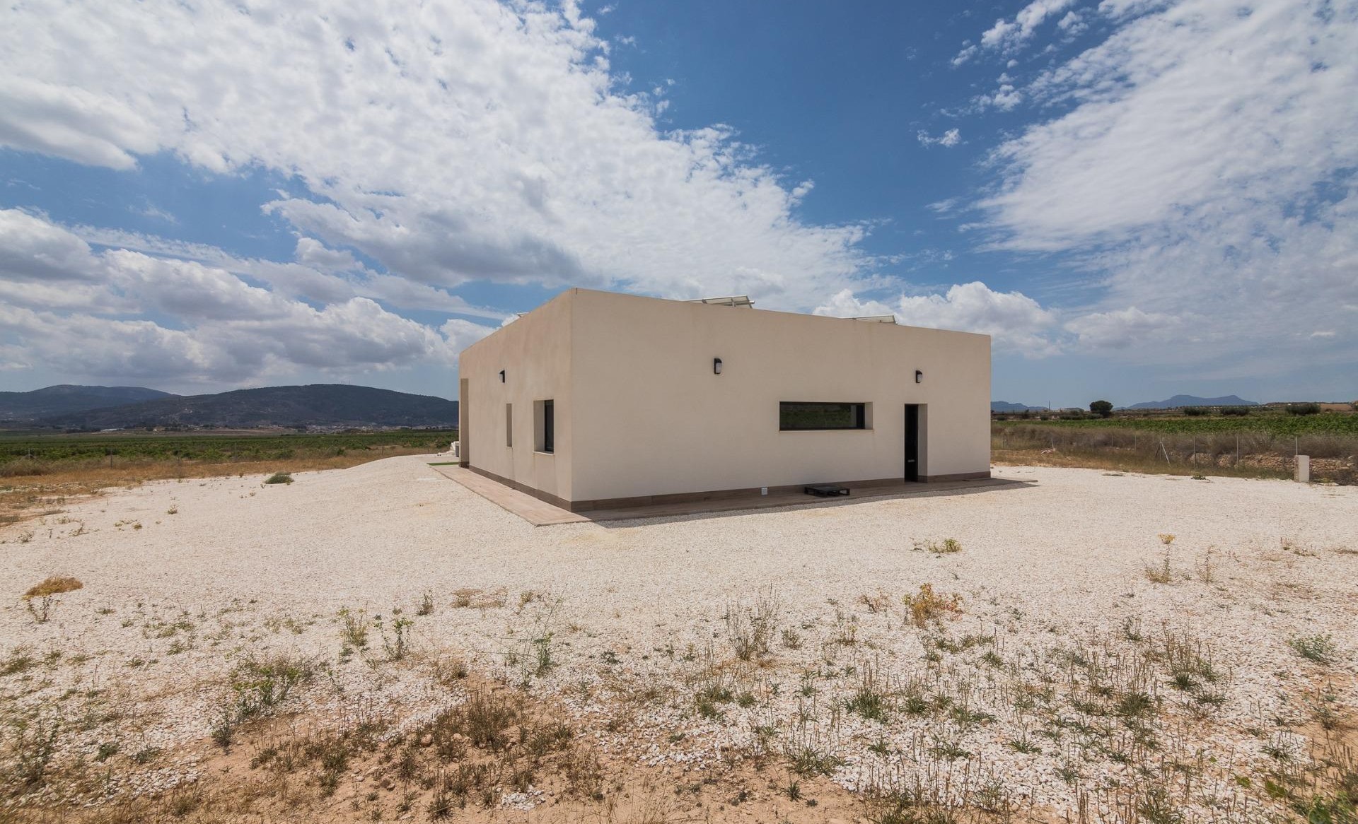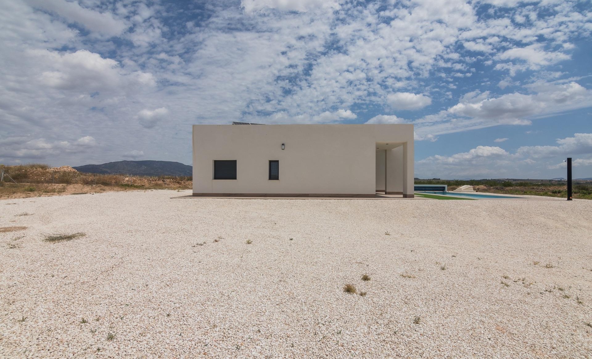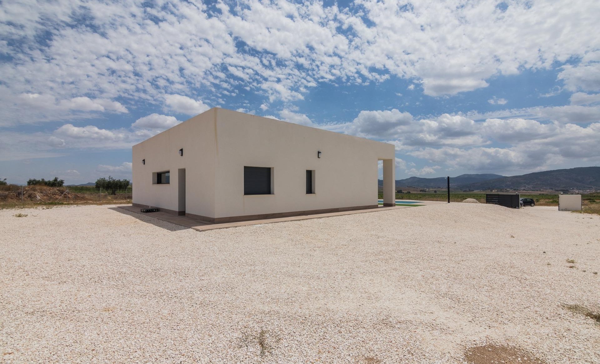 New Build Independent modern villas that can be built on rustic or urban plots of land we have a wide range available in the area of Pinoso: •3 bedrooms, 2 bathrooms• Private swimming pool• Full installation of air conditioning • Full equipped kitchen• Big choice of quality materials• Mains electricity and water• 4 solar panels included• AA Energy Label• Plots from 10.000 m2 in various locations to choose from. • 3.000 m² fenced plot for easy maintenance• Motorised sliding gate On the rustic plots, about 3.000 m2 of the total plot will be fenced and the houses will be delivered with about 1.000 m2 of gravel around the house.The house has a private swimming pool and photovoltaic solar panels for the electricity supply.There are several rustic plots to choose from in different locations, each with a different price (in the prices published in this advert a plot with a value of 40.000 eur has been considered, if the buyer chooses another plot, the final price will be recalculated accordingly).The delivery period is 8 months from the granting of the building licence.It is acquired under a self-promotion regime: the buyer makes payments on account of the price as the builder executes the work.