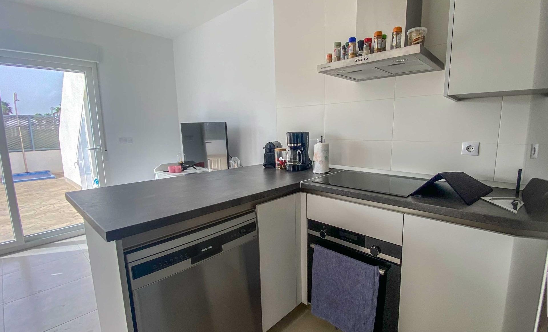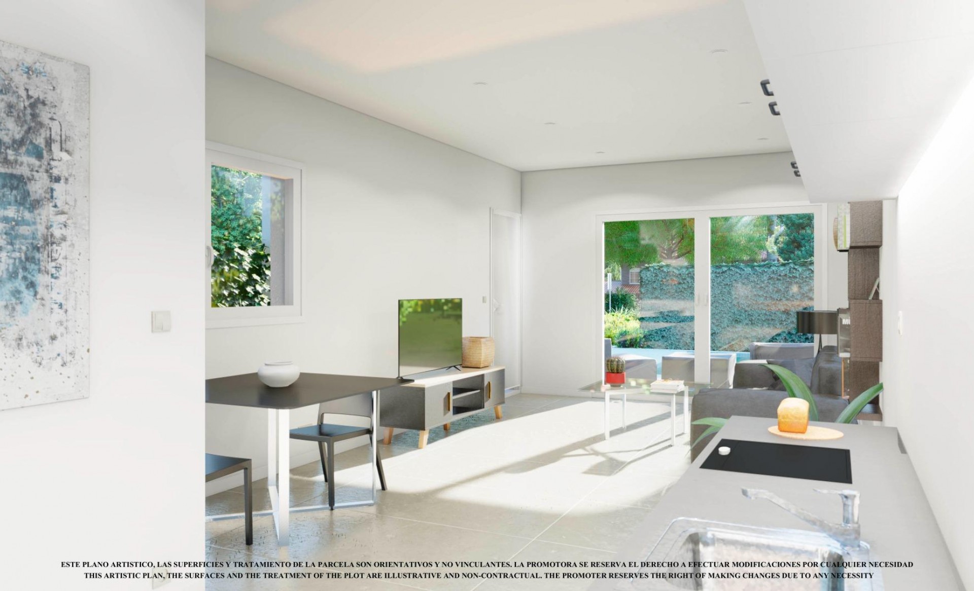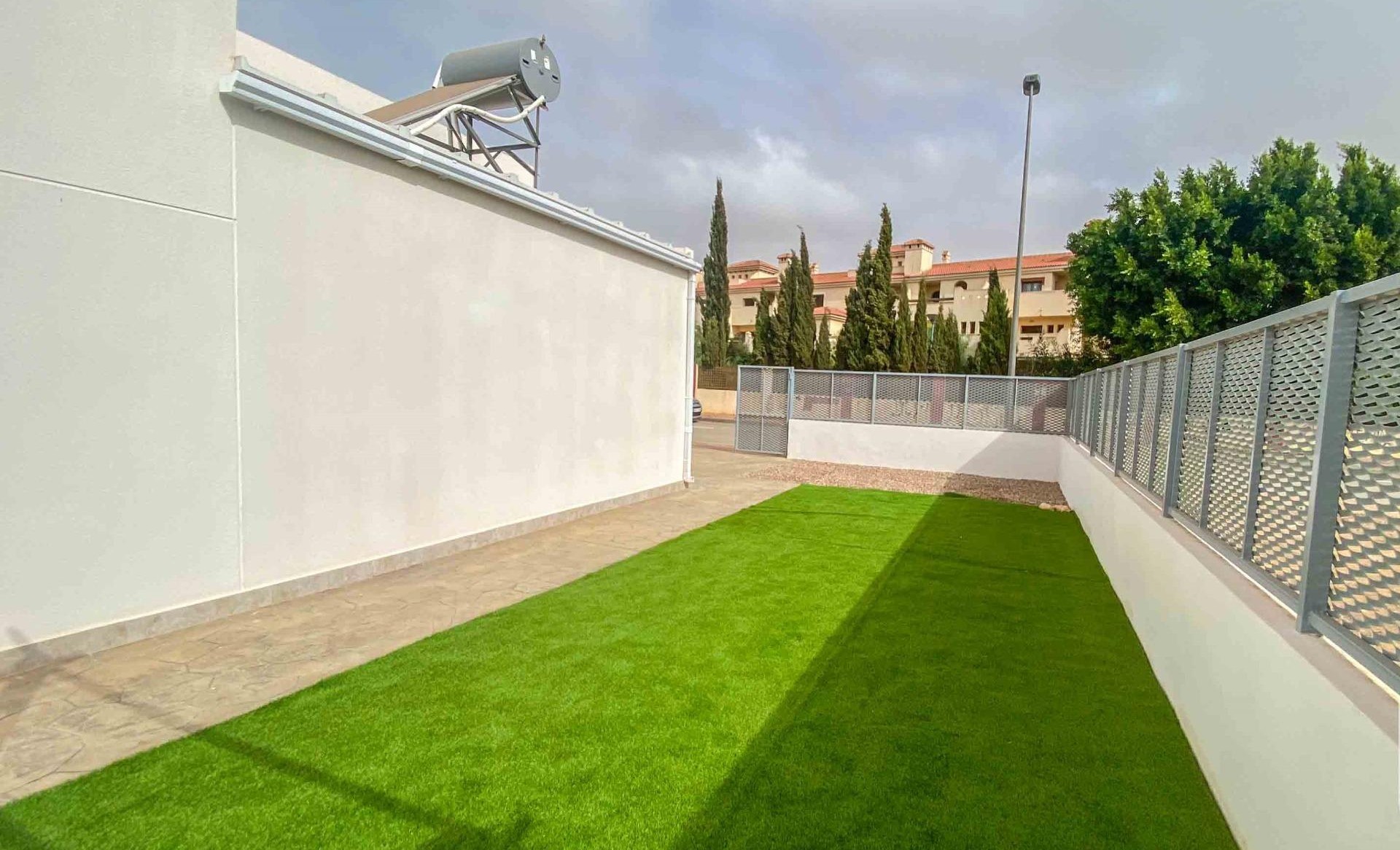 These spacious, well-designed villas are built in pairs. Each villa has its own private 175m2 plot giving ample terraces, pool area and garden on three sides of the villa. We believe that these villas offer the best value for money in Spain – we offer a semi-detached villa with more than 100m2 of terrace ( solarium can be added at extra cost ), pool area or garden for the price of an apartment. The villas have been designed with outdoor living in mind. The living room has two large double doors overlooking the terrace and pool area ideal for outdoor dining. Ample terraces at the front and rear ensure that owners can sunbathe throughout the day. Villas have modern fitted kitchens with a choice of colours for kitchen units and wall tiles in both kitchens and bathrooms and also floors and terraces. The two comfortable double bedrooms both have built-in wardrobes. One bedroom has a shower room en-suite and there is a second guest shower room for bedroom 2. Gardens are surrounded by a 40cm wall with hedging for privacy at the front with gates. Buyers can decide to increase the height of the wall around the rear garden up to a height of 180cm (5foot 10 inches) or add fencing or hedging for privacy. A huge roof-top sun terrace with a spiral staircase is available at extra cost. Each villa has a good-sized garage which could also be used as a hobby room or studio. Pools or Jacuzzi baths can be added at extra cost. We have plans available to construct a third bedroom on the roof of the villas. Residential of villas located 1 km from the beach and the town of Los Alcázares, where you can practice various water sports, surrounded by several golf courses. City of Cartagena less than 15 minutes by car and 30 minutes from Murcia Corvera airport.