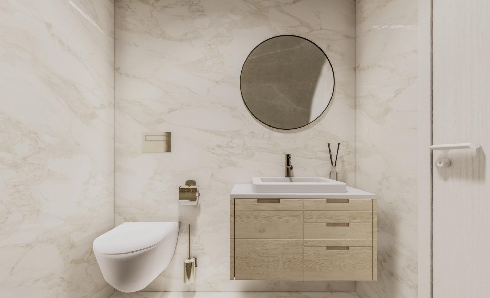New Build an extraordinary development of villas nestled within the beautiful Altaona Resort in Murcia. This exclusive enclave provides an ideal setting for experiencing the seamless fusion of luxury living and the tranquil Mediterranean lifestyle.Feel how the landscape enters the home through the large windows. The garden acquires a great presence and forms part of the very essence of the villa. Inside they are spacious and light, designed to let the Mediterranean light flood through their rooms. New Build villas with open plan kitchen, 2 bedrooms, 2 bathrooms, terrace, private garden with pool and parking space. Features:• The properties have Energy Certificate Rating A.• Ducted air conditioning installation with heat pump. Throughout the house except for bathrooms.• Electric underfloor heating in the living room and bathrooms with individual thermostat per zone.• Air renewal system in the kitchen, bathrooms, laundry room, and guest toilet.• Kitchen Includes extractor hood and electric induction hob with 3 cooking points.• Includes LED lighting in the living room, hallway, and exterior. The rest of the rooms are prepared for the future owner to install their lighting.• USB sockets in all bedrooms.• Electronic intercom for access from the exterior to the interior path. Doorbell at the property entrance.• Home automation system with two smart switches.• Private landscaped garden with drip irrigation system and the pool.• Exterior fencing of the urbanisation.• Vehicle access gates to the urbanisation: Metal sliding gate with remote opening system. Residential located in Altaona Golf just 15 minutes by car from the centre of Murcia capital and 20 minutes from the beaches you can enjoy the tranquillity and security offered by the Golf Course that has 18 holes and the comfort to live close to all services.Murcias airport Corvera only 15 minutes drive away.