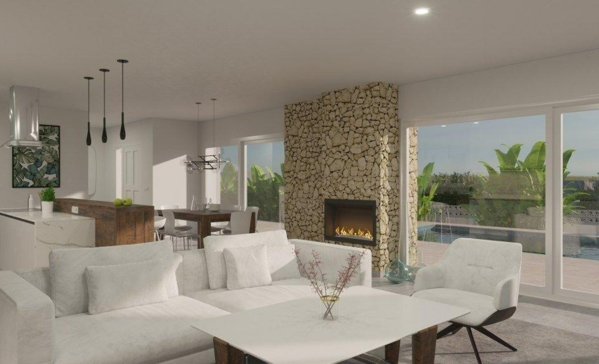 Modern villa located in a quiet residential complex in Alcalalí, within the Jalón Valley. Single-level layout with 3 double bedrooms, one en-suite, and a guest toilet. Open-plan living-dining area with large windows and direct access to the terrace and pool. The kitchen features top-quality ceramic finishes and modular cabinetry, with adjacent laundry room and exterior access. Plot includes private swimming pool, landscaped garden, off-street parking, and is fully fenced with a motorized sliding gate and pedestrian entrance. Good road connections to nearby towns in the Marina Alta region.