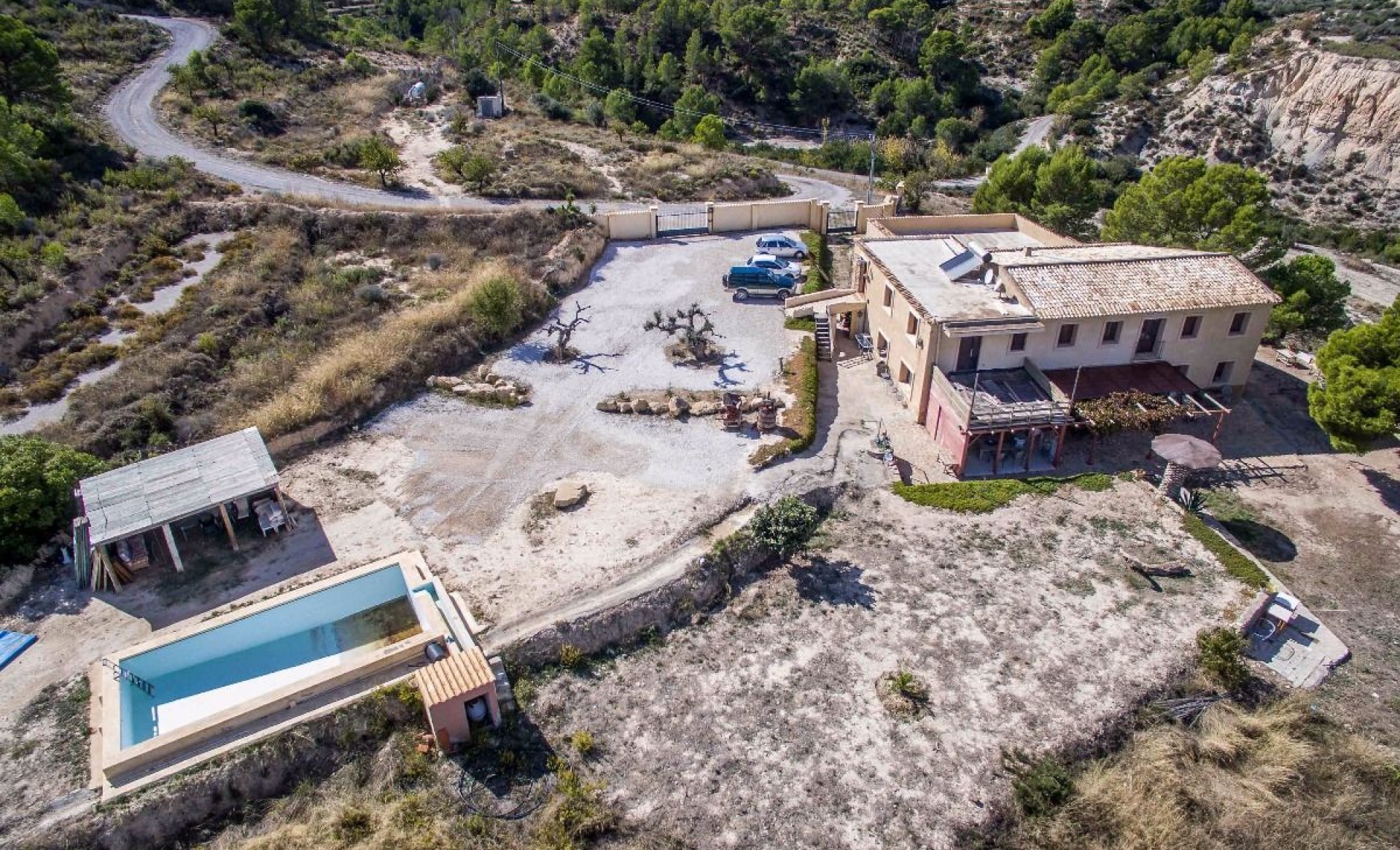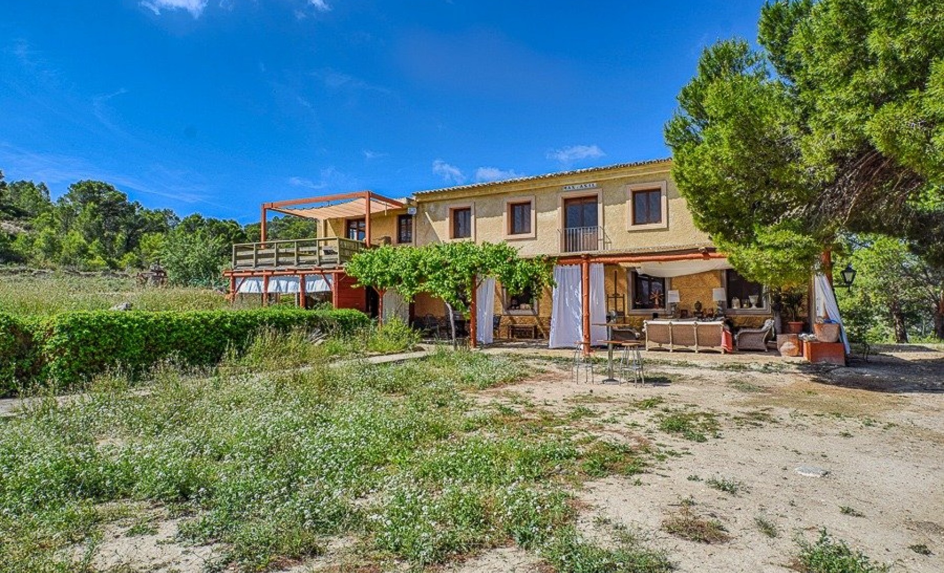 Situated in the peaceful countryside of Relleu, just minutes from the village, this expansive finca offers over 500m² of living space and more than 400,000m² of land, providing the perfect combination of tranquility, space, nature, and relaxation. Layout of the Finca The finca consists of two independent living levels, each with a shared living area, its own kitchen, several bedrooms, and bathrooms. An internal staircase connects the two floors, but thanks to the separate entrance for each level, the floors can also function completely independently. This layout offers numerous possibilities for private use or rental purposes. Endless Possibilities (depending on licences to be granted) The finca and its vast land provide endless opportunities and allow you to bring your vision to life. Whether you dream of a place to relax, a creative project, an artist’s studio, or a retreat, this property offers it all. It’s also ideal for outdoor enthusiasts and families seeking a spacious estate surrounded by nature. In addition, the extensive grounds offer numerous other potential uses: Equestrian enthusiasts: Perfect for a stable. Glamping or agricultural ventures: Ideal for sustainable tourism or farming projects. Retreats and wellness: A peaceful location for yoga, meditation, or other retreats. Active recreation: Opportunities for hiking, mountain biking, or even hunting. Sporting activities: A paradise for cyclists and hikers with scenic routes and trails nearby. Surroundings and Activities The area is a haven for outdoor enthusiasts. Cyclists are drawn to the scenic mountain roads and challenging climbs further inland, while hikers and climbers will love the rugged landscapes. A unique attraction is the "El Caminito del Rey" in Relleu, which opened in January 2022. This spectacular walking trail features a 212-meter-long wooden pathway, secured high on a cliff face above a gorge near the Relleu reservoir, Pantano de Relleu. This national landmark is just a 10-minute drive from the finca. Location The amenities of the village are only a short distance away. The coast, offering sun, sea, and sandy beaches, is just a 35-minute drive, while the airport is less than an hour away, ensuring excellent accessibility.