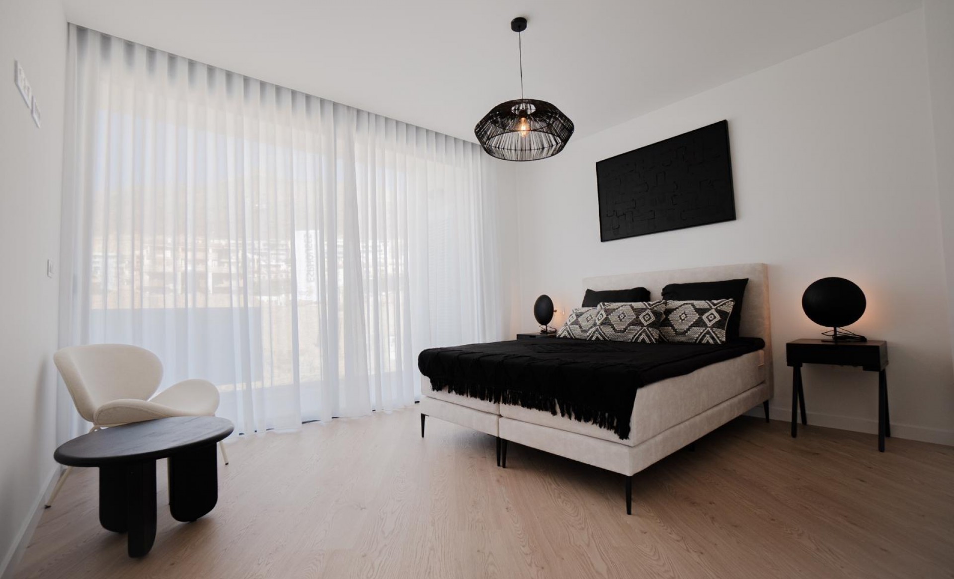 These luxury villas are located in a quiet residential area at the foot of the mountain in Finestrat and only 10 minutes from the beach, in the Costa Blanca. These villas stand out not only for its design but also for its functionality, luminosity, spectacular views and minimalist decoration in its interior. The villas consist of 3 bedrooms, three bathrooms, open kitchen, a large terrace with pergola, fully finished garden, private swimming pool, and two parking spaces. The villas come equipped with bathroom furniture and screens, osmosis system, Bosch appliances, ducted air conditioning (hot-cold), motorized blinds in the bedrooms, home automation system, built-in wardrobes, etc. For more information or viewings, please contact us.~