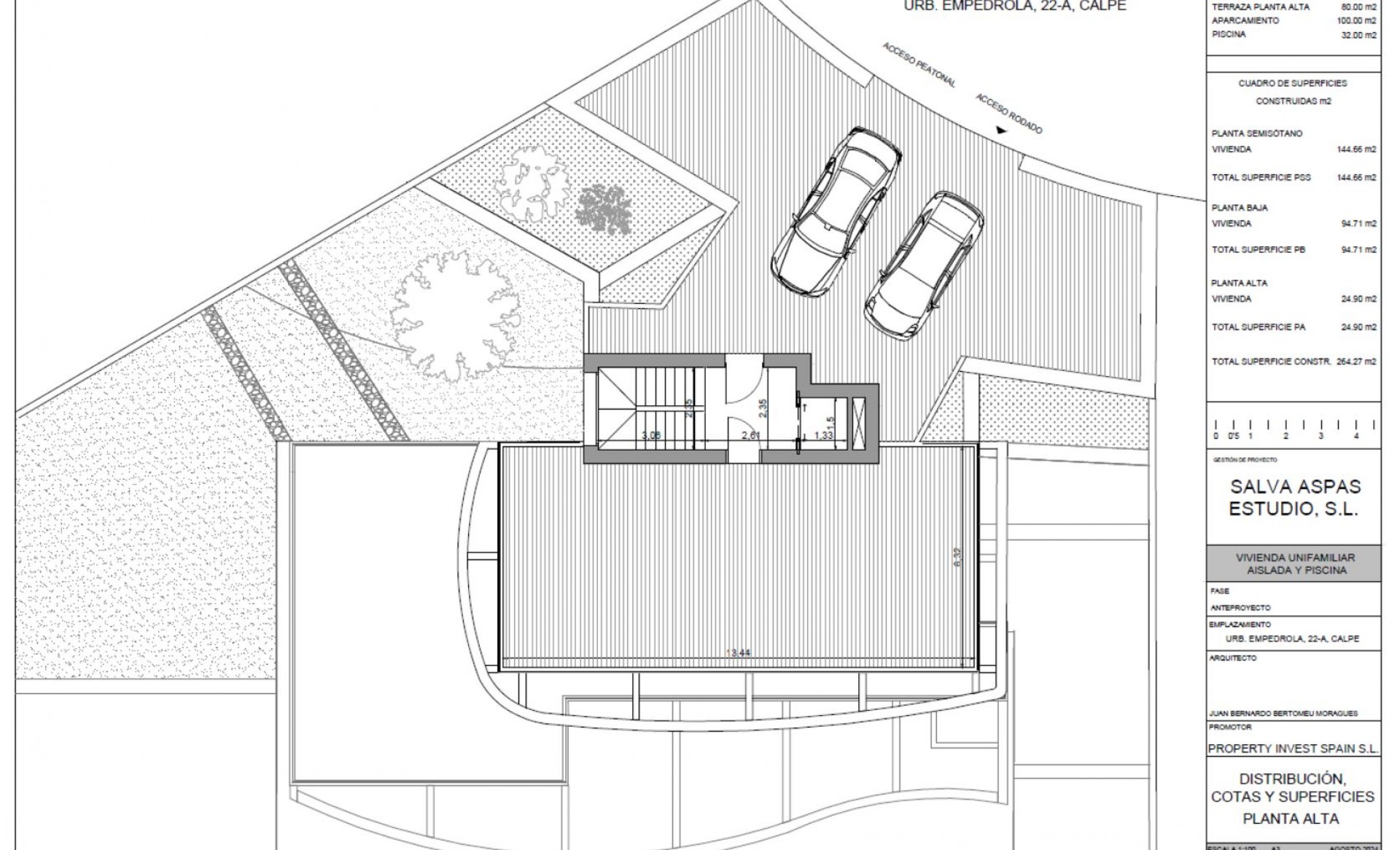 If you would like to live in a house with 180º views of the sea and the rock of Calpe, don’t hesitate and take a look at this project. A22 is a project designed with the aim of taking advantage of the luminosity and panoramic views of the Mediterranean offered by the south facing plot. A construction of 3 bedrooms, 3 bathrooms, living-dining room with open kitchen, swimming pool and much more will make this project your dream come true. Sales Price : 1.280.000.- Euro by 220 m2 Living Do not hesitate and contact us for more information and to organize a visit.
