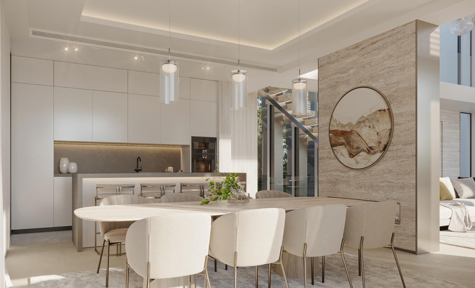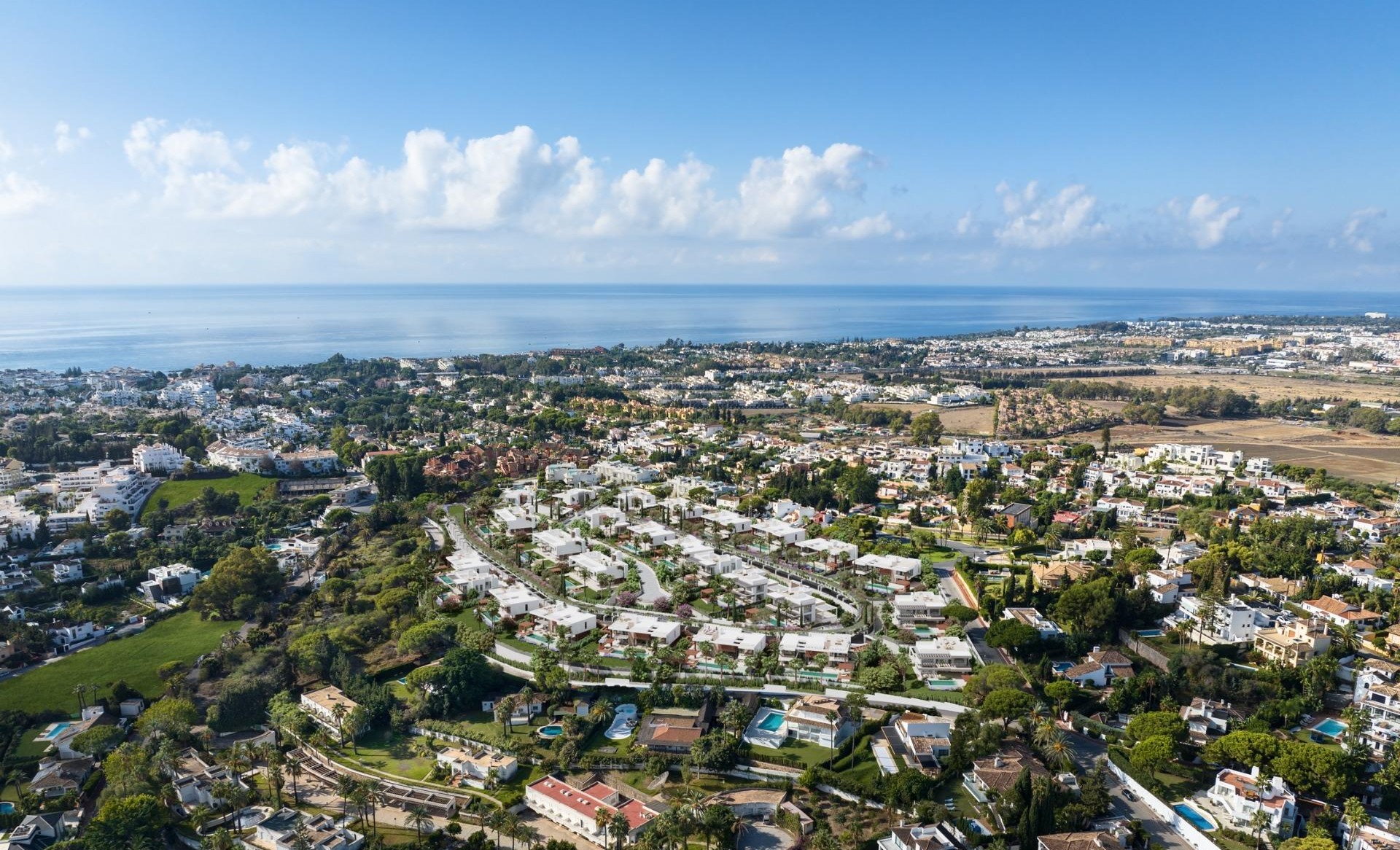 NEW BUILD LUXURY VILLAS NEAR MARBELLA Nestled within the illustrious enclave of Nueva Andalucia, New Project provides residents a luxurious escape that embodies the true essence of luxury living. With its privileged location in Nueva Andalucia, residents are granted convenient access to a plethora of nearby amenities, as well as sweeping views of the surrounding mountains and sea. Urbanization stands as a sanctuary of innovation and luxury, serving as a testament to the synergy of modern design and timeless elegance. Residents are granted an elevated lifestyle, with the finest elements of architecture, security and personalisation all combined. This visionary project redefines the concept of a modern urbanisation, offering an unparalleled lifestyle characterised by refinement, security and design ingenuity. Comprising a collection of 26 New Build Luxury villas, urbanization presents a harmonious blend of architectural brilliance and functional elegance. Designed by the visionary architect Ismael Mérida, the villas stand as modern marvels, each spanning three levels, including a solarium and basement, all united by a ground floor. Facing the cardinal directions of South, East, South East and West, the villas embrace the sun’s journey, casting enchanting hues and shadows throughout the day. What truly sets this project apart is its innovative approach to vehicular circulation. Beneath the residences, an ingeniously designed avenue accommodates the flow of cars, as well as access to private carports and garages, discreetly hidden from sight. From an aerial perspective, what captures the eye is not a network of roads, but a network of pedestrian pathways and lush landscapes, with vehicles tucked away underneath connecting to garages and carports. This captivating feature not only enhances the aesthetic appeal but also fosters an atmosphere of serenity.Immersed in the tranquillity of a gated community with 24-hour security surveillance, urbanization ensures an environment of complete peace of mind. A security guard stationed at the entrance adds an additional layer of security and reassurance. A single entrance and exit point not only enhance security but also contribute to the sense of seclusion and privacy that defines this exclusive enclave. Residents can be confident that only they will have access to the community, and guests will be granted access upon approval. Diversity flourishes at this urbanization with three distinct typologies. The small and medium residences share a refined similarity, while the larger double-plot villas offer expansive living on a grand scale. Upgrade packages are available that will allow residents to tailor their villa to their precise desires. 23 of these homes boast a harmonious symmetry in size, providing a consistent and inviting atmosphere throughout the community. The 23 homes are divided into 2 typologies: Typology A designed by GC-Studio and Typology B designed by J. A. Flores. Adding an extra layer of distinction, 3 flagship Signature Villas stand as iconic landmarks of prestige, each exuding its own unique charm. These 3 villas are classified as Typology C, designed by Pedro Peña. All villas not only have their own bespoke amenities such as entertainment rooms, home cinemas and home gyms, but also have access to communal amenities such as an incredible gymnasium and state-of-the-art SPA with an indoor pool, hammam, sauna and ice bath. The Typology A villas comprise smaller-sized residences, each characterised by impeccable interior design curated by the renowned design studio GC-Studio. These villas are further classified into two subtypes, A1 and A2. The distinctions between these typologies lie in their orientations, the arrangement of bedrooms on each level and the availability of private carports or garages. A1 Villas feature a private carport accessible through the avenue beneath the residences, while A2 Villas come with their own private garage, similarly accessed through the same avenue. Besides their distinctive features, all Typology A Villas are equipped with an entertainment level, enhancing the overall lifestyle experience for residents. The Typology A Villas elevate the living experience with private infinity pools and meticulously landscaped gardens. Adding an extra layer of luxury and entertainment, each residence is crowned with a bespoke solarium, offering residents a unique and private space for leisure and relaxation. The community’s shared spaces are a testament to its commitment to wellness and indulgence. A lavish SPA and state-of-the-art gymnasium cater to the physical well-being of residents, while meticulously manicured gardens provide a haven for relaxation. The SPA boasts luxurious amenities such as an indoor pool, hammam, sauna and ice bath, all thoughtfully curated to enhance residents’ lifestyle. The communal gardens are immaculately manicured, offering residents verdant areas ideal for relaxation.