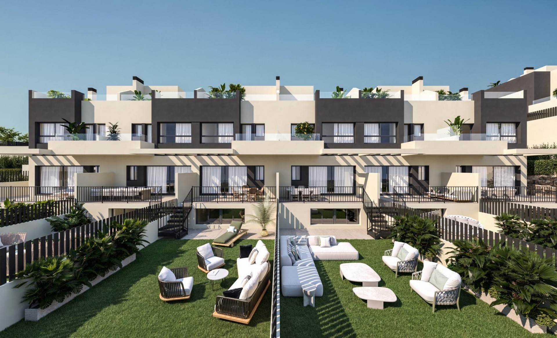New Build 4 Bedroom Townhouses in Torre del Mar Just 800 m from the Beach Modern Family Homes on the Costa del Sol This exclusive residential development consists of 21 contemporary 4 bedroom townhouses located in Torre del Mar, one of the most sought after coastal areas in the Axarquia region of the Costa del Sol. Just 800 meters from the beach, these spacious homes are ideal for families seeking comfort, outdoor living and proximity to the sea. Torre del Mar is known for its long sandy beaches, lively promenade, excellent gastronomy and year round services. The town offers a perfect balance between relaxed coastal living and modern infrastructure, with schools, health centers, shopping areas and sports facilities all within easy reach. Spacious Layout Over Four Levels with Private Solarium Each townhouse is distributed over three main floors plus a private rooftop solarium of approximately 48 m2, offering generous interior and exterior spaces. The basement level includes private parking for two cars, a multifunctional room with natural light that can be used as a games room, office or additional bedroom, a laundry storage area and a guest toilet. On the ground floor, the open plan living and kitchen area connects directly to the front terrace and private garden. This level also features one bedroom and a full bathroom, making it ideal for guests or multigenerational living. An additional rear terrace provides additional outside space. The first floor offers three additional bedrooms and two bathrooms, one of them en suite, as well as two terraces at the front and rear of the property. Quality Specifications and Energy Efficiency These new build homes are delivered with high quality finishes and modern installations, including: Fitted kitchen with ceramic hob, sink and extractor hood Fully installed ducted air conditioning Aerothermal system for hot water Bathrooms with furniture, mirrors and shower screens Electric shutters in living room and bedrooms Video intercom system The residential complex also features landscaped gardens and a communal swimming pool for residents to enjoy. Excellent Location Near Beach, Golf and Malaga City The development is just 4 km from Baviera Golf and 30 km from Málaga city center, with direct access to the A7 motorway. Distances to Key Points of Interest Beach 0.8 km Baviera Golf 4 km Málaga city 30 km Malaga Airport 45 km Vélez Málaga 5 km Your Ideal Home by the Sea in Torre del Mar These modern townhouses offer space, quality and an unbeatable location close to the beach. Contact us today to receive more information or to arrange a viewing of this outstanding new build development in Torre del Mar. 535