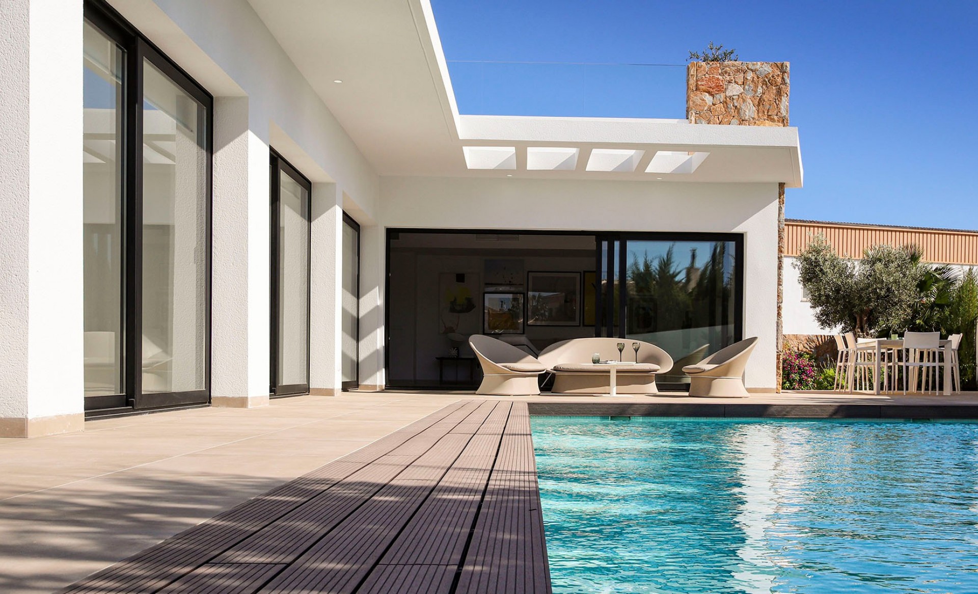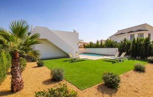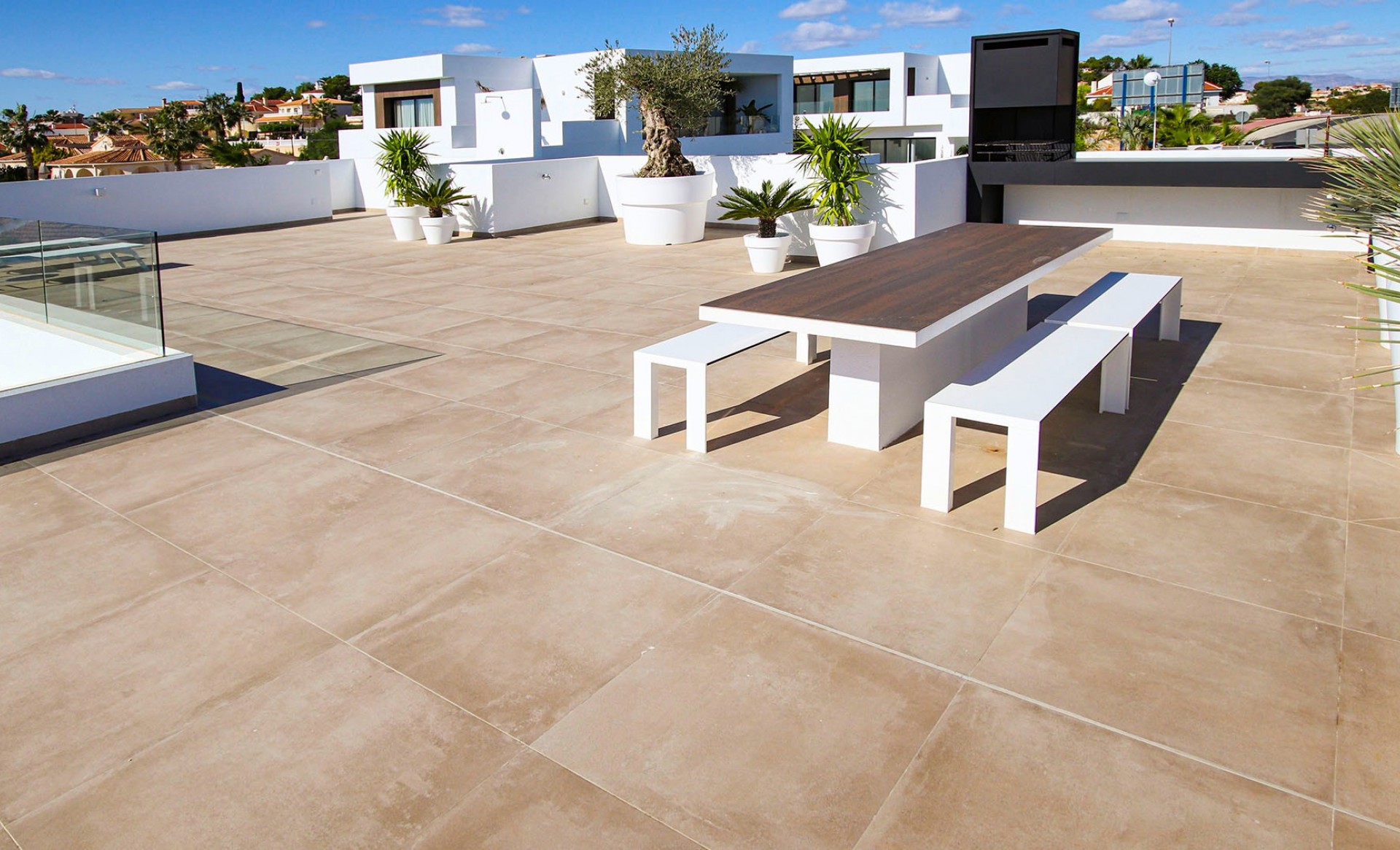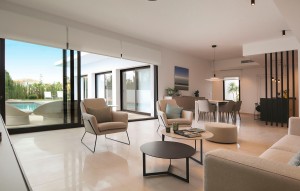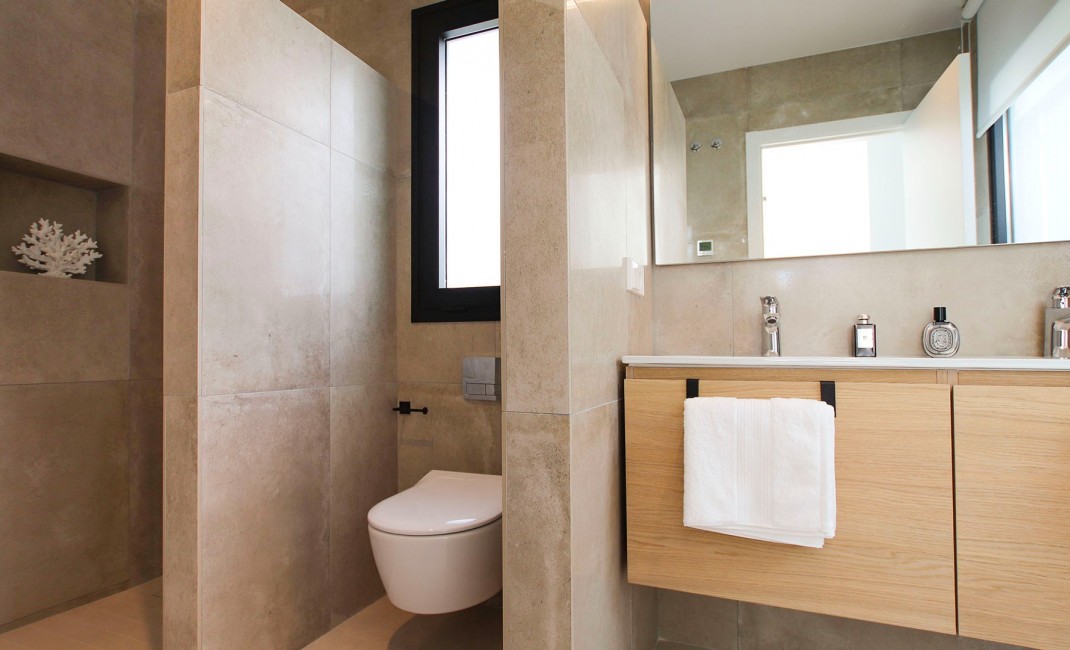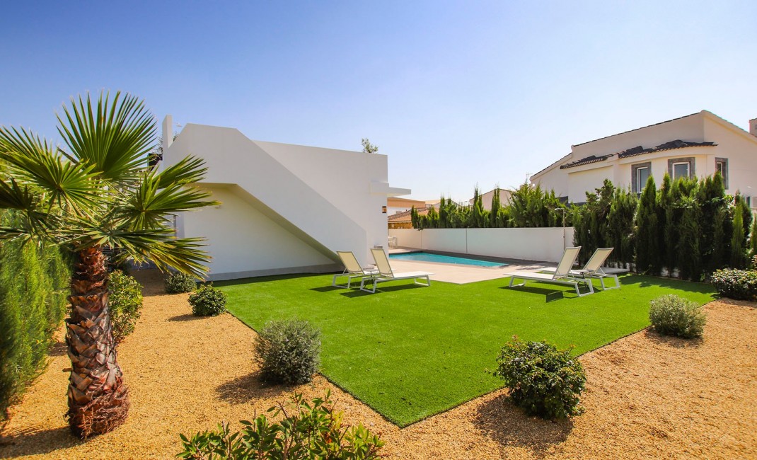Cette belle propriété est construite sur un étage plus un solarium, avec un grand espace extérieur qui offre un parking sur la parcelle, un jardin, un débarras et une piscine privée. L'intérieur se compose d'un salon ouvert relié à la cuisine, une buanderie, 3 chambres et 2 salles de bain. Le salon et les chambres ont un accès direct à la terrasse et à la piscine. Cette villa met l'accent sur le luxe et le confort et offre d'excellentes finitions. L'extérieur se marie harmonieusement avec l'environnement naturel, en utilisant des couleurs terreuses et de la pierre naturelle