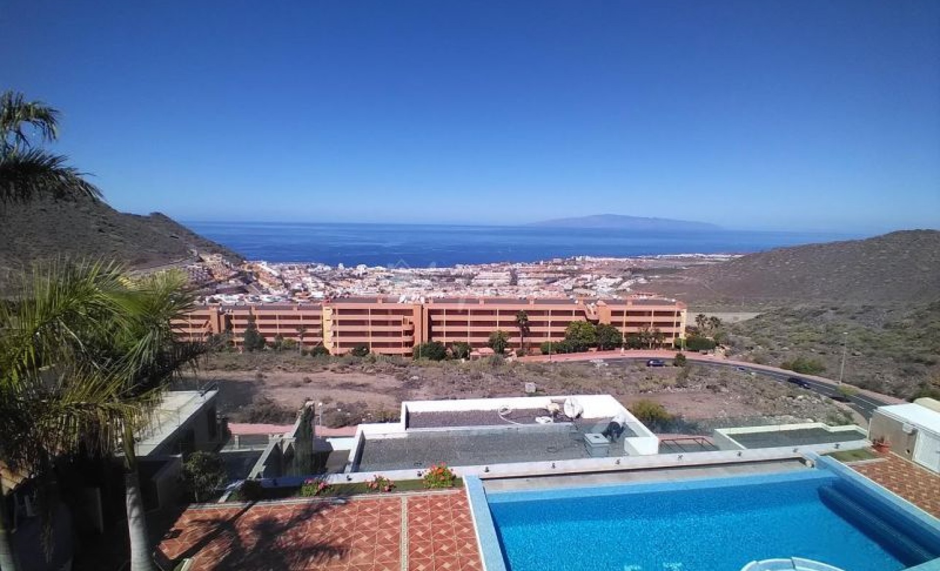 À Torviscas Alto, nous proposons à la vente une villa spacieuse et bien entretenue. Depuis les fenêtres et terrasses, vous profiterez d'une vue panoramique spectaculaire sur la côte et les montagnes. Située dans le quartier résidentiel prisé de Roque del Conde, la villa se trouve sur un terrain de 500 m² avec une surface habitable de 235 m². La propriété se compose de quatre grandes chambres avec placards intégrés, trois salles de bains et un WC séparé. Il y a une cuisine indépendante entièrement équipée et un salon-salle à manger lumineux. À l’extérieur, vous trouverez une piscine privée, un jacuzzi et une grande terrasse ensoleillée avec des vues impressionnantes sur la mer et les montagnes. Un garage fermé est également inclus dans la vente. Roque del Conde Alto est très recherché pour son emplacement en hauteur, son calme et sa proximité des plages, restaurants, magasins et bars de Costa Adeje, à seulement 5–10 minutes en voiture. Idéal pour une résidence familiale ou un excellent investissement.