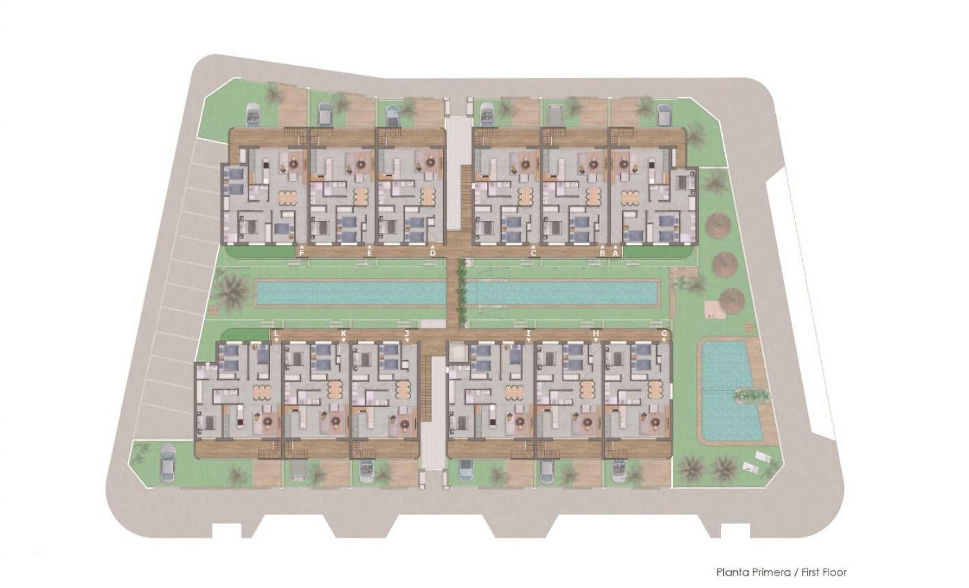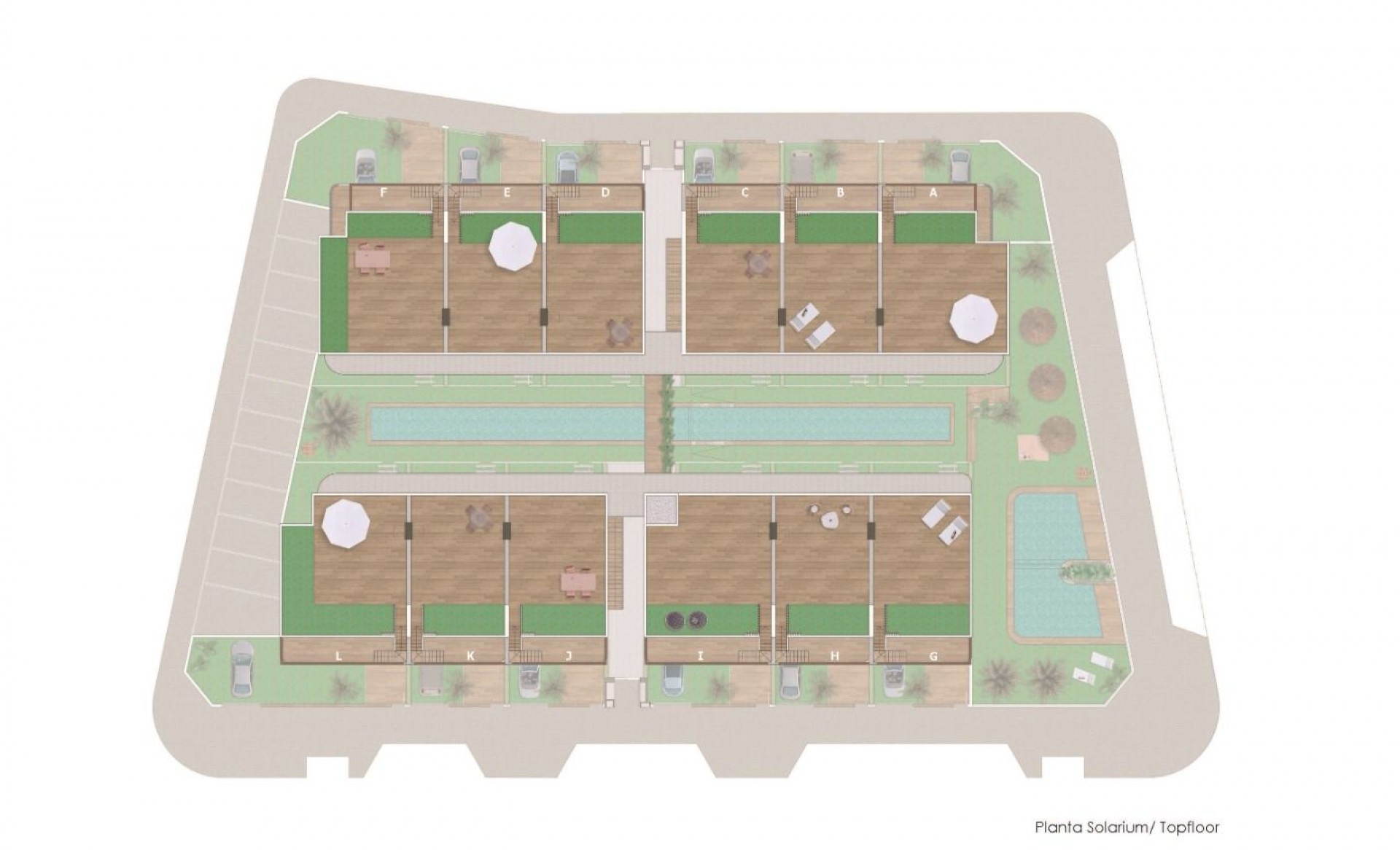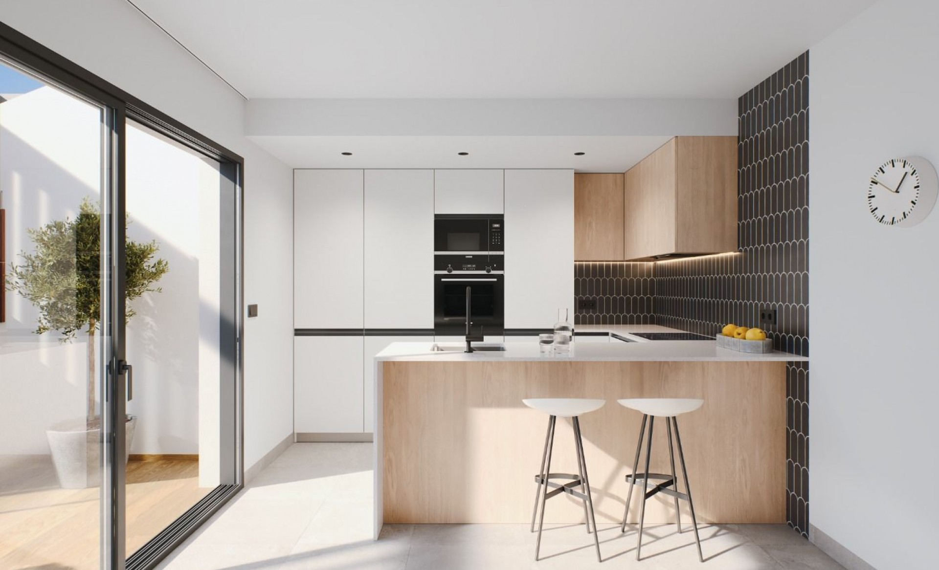 Nouvelle construction d'un magnifique complexe résidentiel de 24 bungalows, conçus et dessinés pour vivre avec un maximum de confort dans un endroit privilégié, entouré de toutes sortes de services et à seulement 4 km de la mer. Ces propriétés sont composées de 2 ou 3 chambres, 2 salles de bain, une cuisine ouverte sur le salon, des placards. Les bungalows du rez-de-chaussée ont un jardin privé et les bungalows du dernier étage un solarium privé. Toutes les propriétés ont une place de parking. Le complexe résidentiel dispose d'une excellente zone commune avec une piscine et une piscine extérieure. Pilar de la Horadada est un village espagnol typique situé dans la partie la plus méridionale de la Costa Blanca. La grande rue principale comporte des supermarchés, de nombreux magasins, des restaurants et des bars et quelques jolies places. Les belles plages de Torre de la Horadada et de Mil Palmeras, avec leur promenade de sable fin, ne sont qu'à 5 minutes. À Pilar de la Horadada, il existe également un réseau bien développé de pistes cyclables et de sentiers de randonnée, ainsi qu'une grande offre d'activités sportives variées. Le terrain de golf 18 trous de Lo Romero se trouve à une courte distance en voiture de la ville. Les aéroports de Corvera (Murcie) et d'Alicante sont respectivement à 40 et 55 minutes.