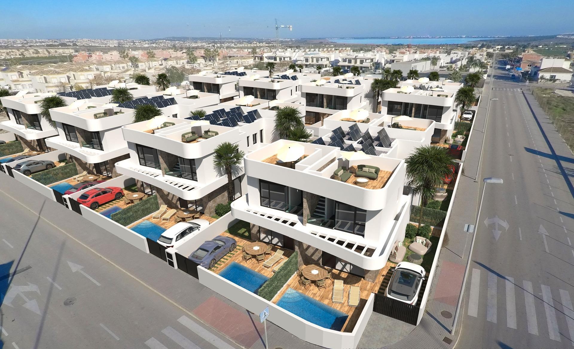 Nouveau projet de construction situé à La Herrada (Los Montesinos), dans un endroit privilégié proche des meilleures plages de Guardamar et avec toutes les commodités offertes par une grande municipalité comme Los Montesinos. Ce projet compte 32 villas, certaines jumelées sur 2 étages et d'autres indépendantes sur un seul étage, qui sont livrées avec le meilleur équipement, y compris le solarium, les écrans de bain, le jardin fini avec du gazon artificiel de la meilleure qualité, les éléments décoratifs de jardinage, et la pré-installation pour les panneaux solaires, la prise électrique et le moteur de la porte pour les véhicules. La villa dispose de 3 chambres à coucher, 3 salles de bains, cuisine ouverte avec salon, armoires encastrées, terrasse. Le village typique de Los Montesinos est stratégiquement situé à 10 minutes en voiture des plages et des loisirs de Torrevieja (avec tous les services d'une grande ville : théâtre, 2 hôpitaux, écoles internationales, etc.), plusieurs terrains de golf et avec un accès facile à l'autoroute A7 pour atteindre l'aéroport d'Alicante en 20 minutes. Dans l'urbanisation, il y a des supermarchés et des bars pour le service quotidien, étant un environnement rural et tranquille. Le climat de cette région garantit 300 jours de soleil par an avec une température moyenne de 20ºC, ce qui, avec la riche gastronomie et l'offre culturelle et sportive de ses environs, fait de cette région un endroit idéal pour établir une deuxième maison de vacances ou un endroit tranquille pour vivre de façon permanente.