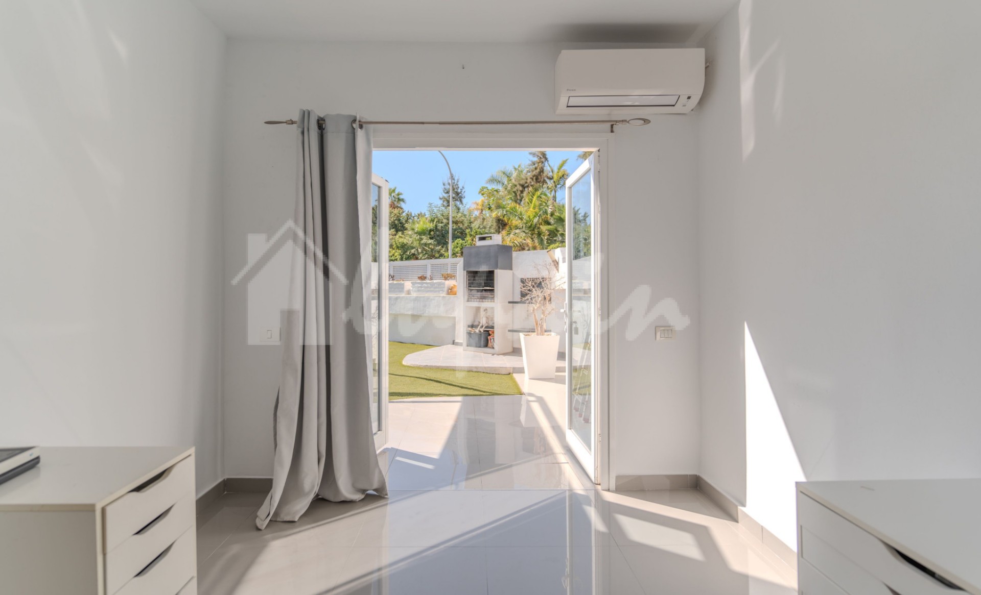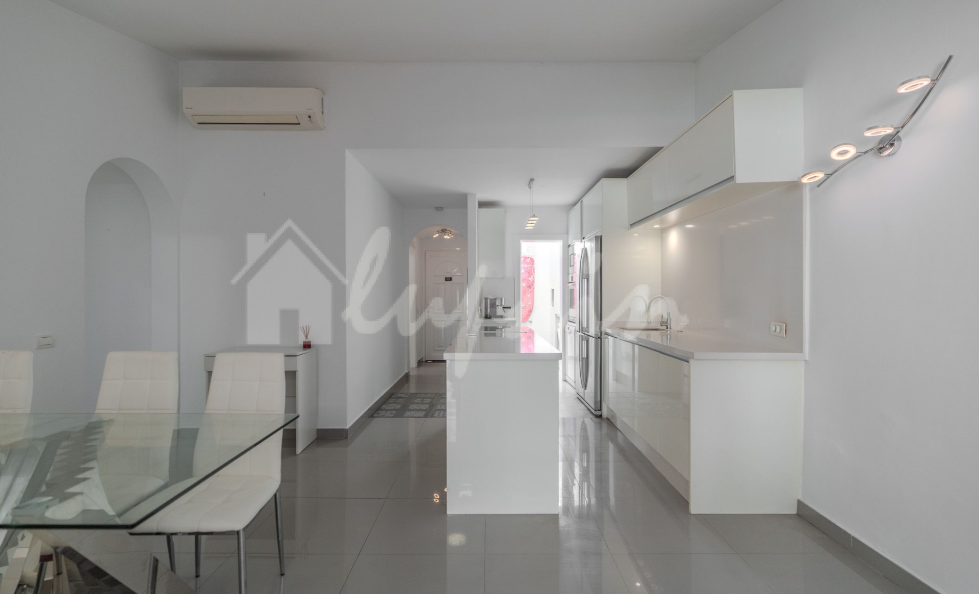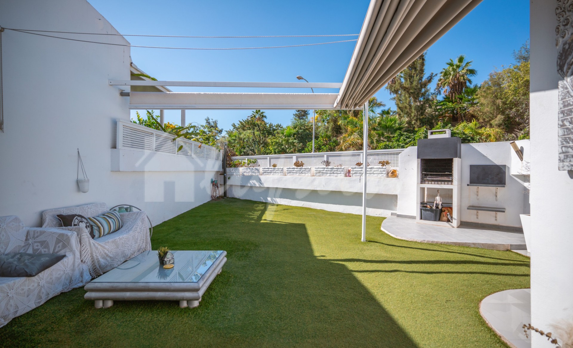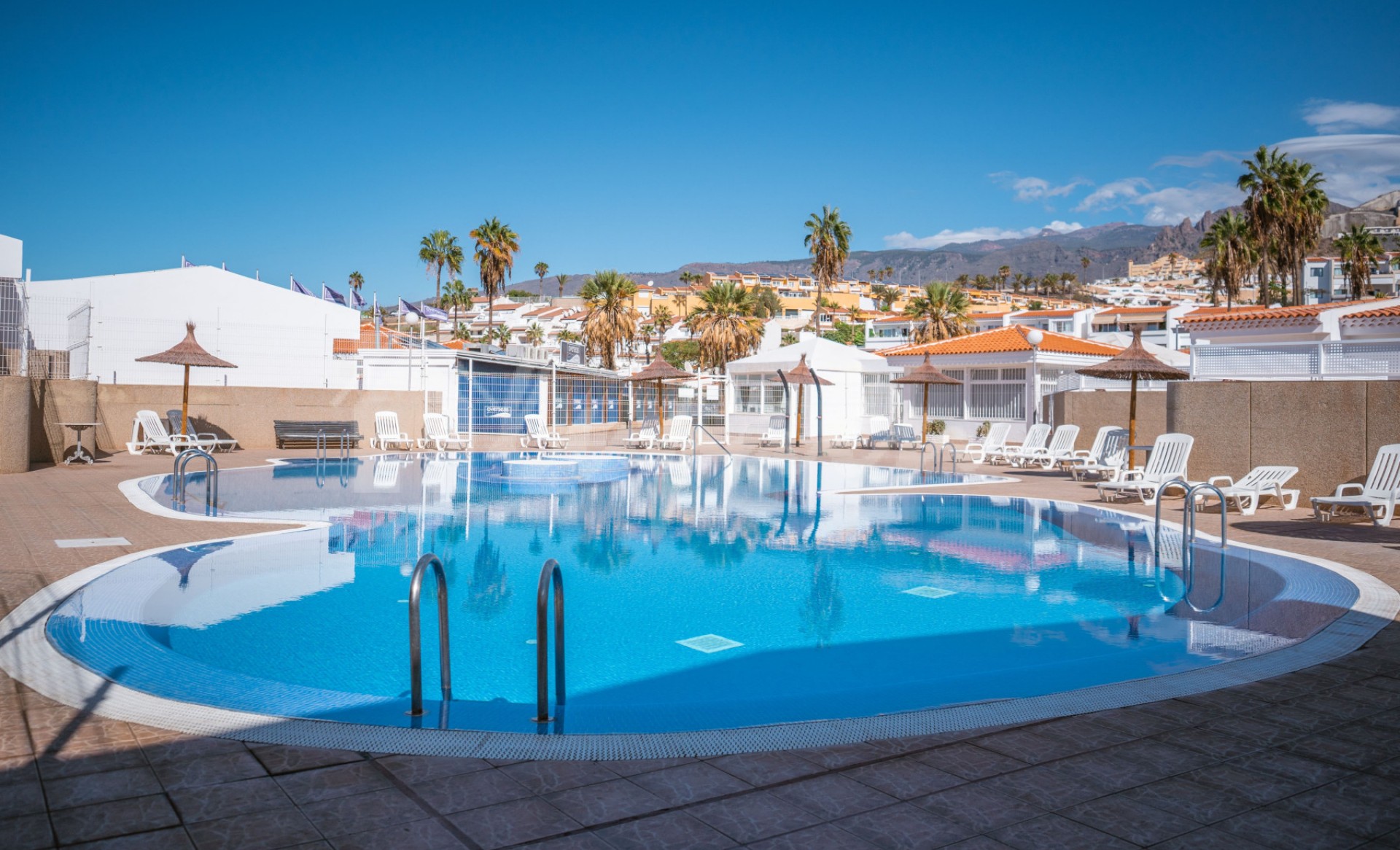 Sfeervolle bungalow met twee ruime slaapkamers, een complete badkamer en een extra toilet. De open keuken is volledig ingericht en uitgerust, en sluit aan op een eetgedeelte en een lichte woonkamer. De hoofdslaapkamer beschikt over een grote inloopkast en de tweede slaapkamer heeft ingebouwde kasten. Naast de keuken bevindt zich een praktische wasruimte/voorraadkast met opbergruimte. Er is ook een extra kamer die momenteel dienstdoet als kantoor, maar eenvoudig kan worden omgevormd tot een derde slaapkamer. Vanuit de woonkamer is er toegang tot een royaal terras met barbecuegedeelte, perfect om buiten te genieten. De woning is volledig gerenoveerd. Ideaal als permanente woning of als investering, want vakantieverhuur is toegestaan. Gelegen in een verzorgd complex met gemeenschappelijk zwembad en tuin, dichtbij winkels, bars, restaurants, supermarkten en bushaltes. Aqualand ligt op slechts 3 minuten wandelen, Puerto Colón op 15 minuten en Playa Fañabé op 20 minuten.