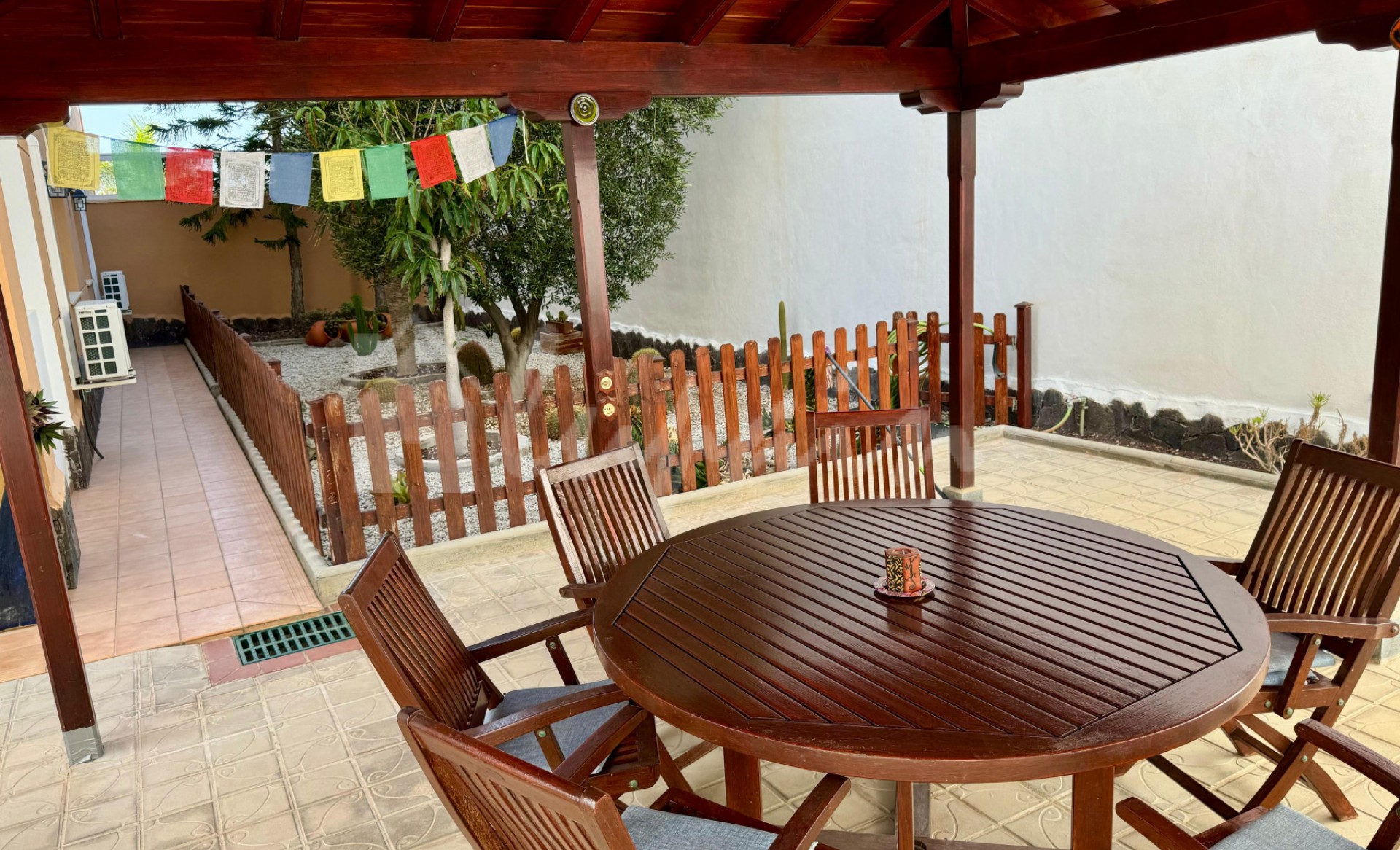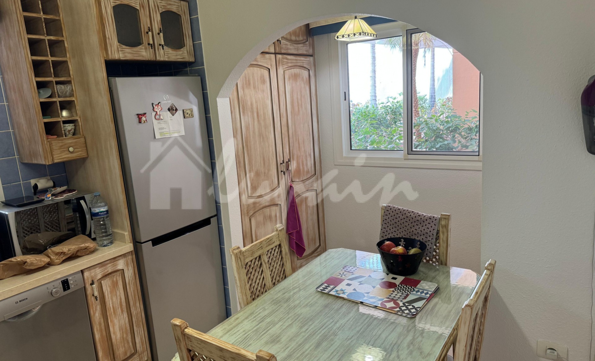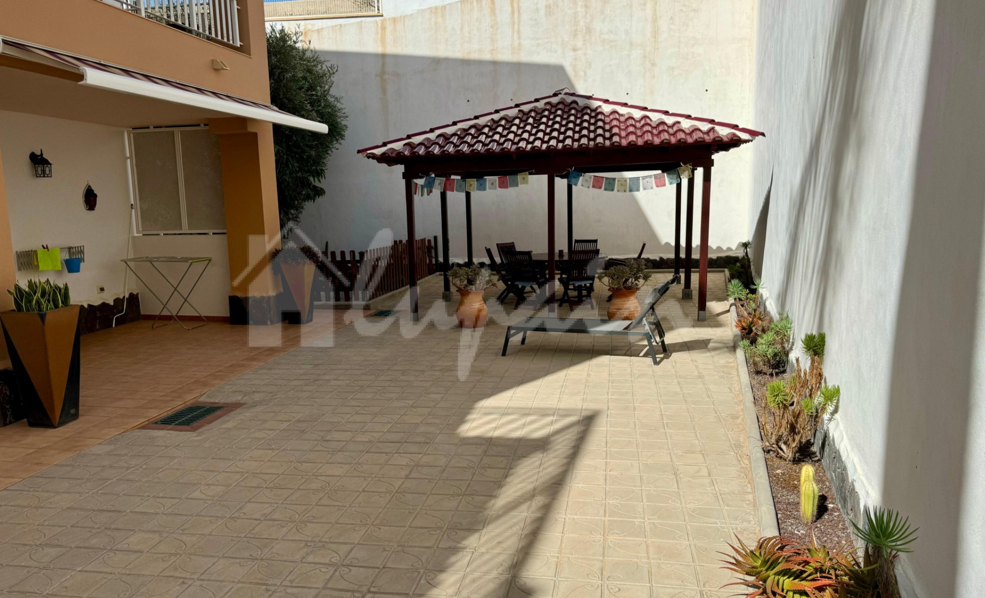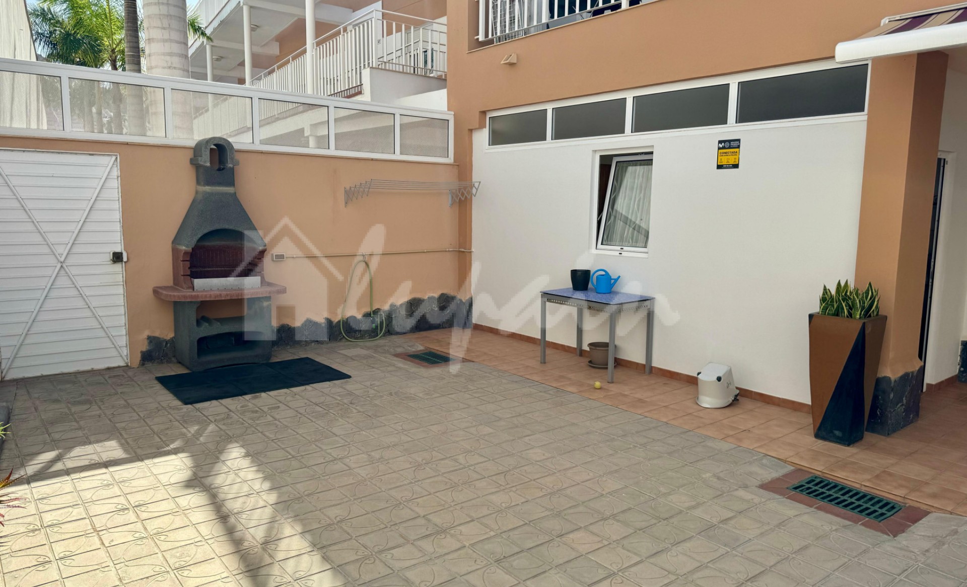 Fantastisch appartement met 2 slaapkamers en 2 badkamers te koop in het bekende Brisas del Mar-complex in El Madroñal. Dit appartement van 92 m2 op de begane grond is smaakvol ingericht en beschikt over 2 tweepersoonsslaapkamers, twee complete badkamers (waarvan één en suite), een ruime woonkamer, een aparte volledig uitgeruste keuken met veel kasten en hoogwaardige apparatuur, een grote wasruimte met wasmachine en droger, en een buitengewone terras van 168 m2 met een privétuin, barbecue en chill-outruimte. Het heeft directe toegang tot het gemeenschappelijke zwembad. Het complex is zeer goed onderhouden, met zonneweiden, mooie tuinen en liften. Het appartement wordt volledig gemeubileerd verkocht en heeft een parkeerplaats die is voorbereid op elektrische auto's met afstandsbediening. Ideaal voor gezinnen die rust en ruimte zoeken. Slechts enkele minuten van de internationale school van Adeje en alle voorzieningen zoals bars, supermarkten, restaurants en winkels. Neem gerust contact met ons op voor een bezichtiging. Zeer aanbevolen.