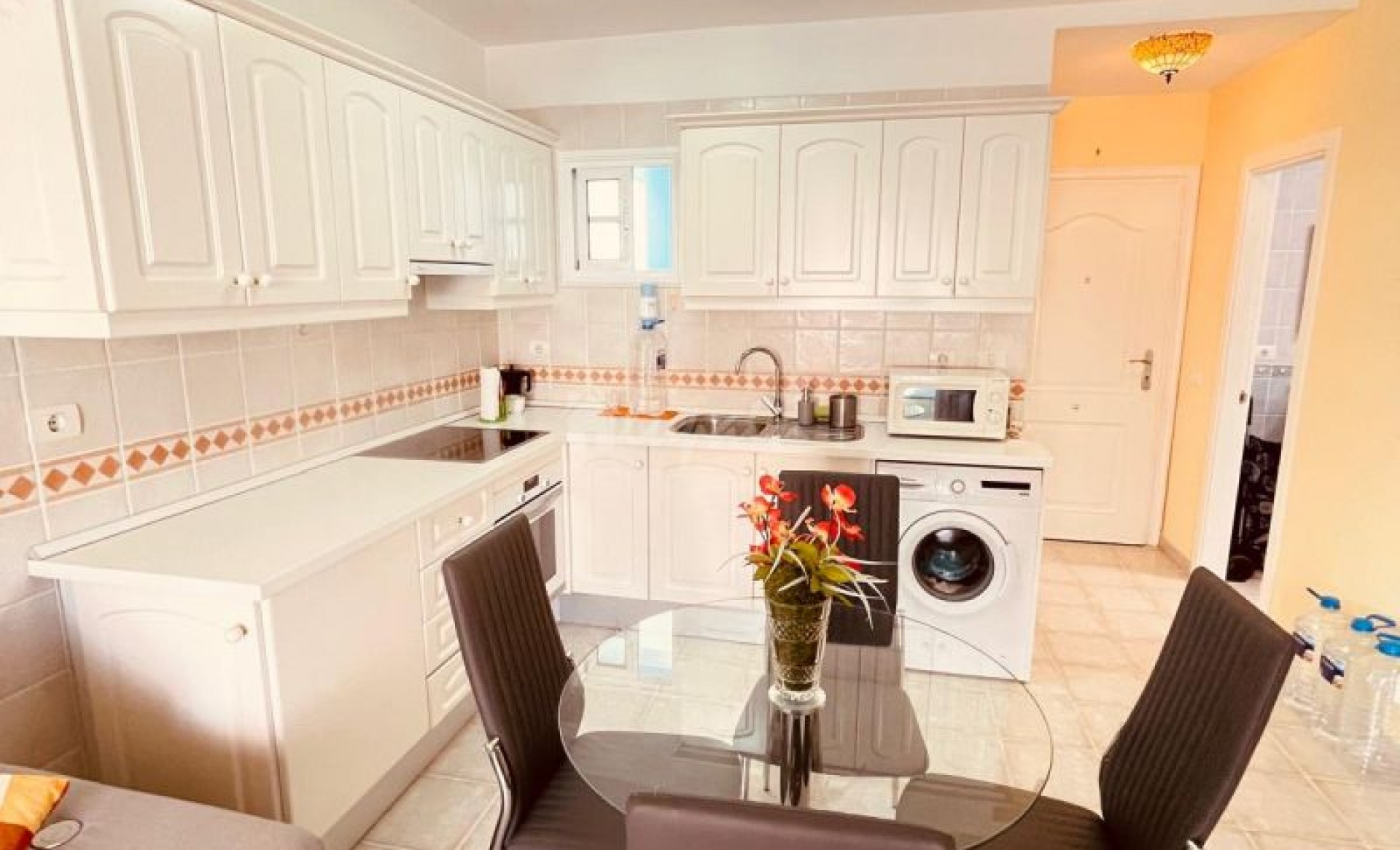 Een mooi penthouse appartement in het populaire complex El Mirador in Los Cristianos. De woning beschikt over één slaapkamer met ingebouwde kasten en een badkamer. Er is een volledig uitgeruste Amerikaanse keuken en een woon-/eetkamer met openslaande deuren naar het terras met prachtig uitzicht. Een wenteltrap leidt naar een groot dakterras met schitterend uitzicht op de bergen. Het complex heeft een gemeenschappelijk zwembad, tuinen en een zeer centrale ligging dicht bij alle voorzieningen, wat deze woning in El Mirador tot een fantastische investeringskans maakt.
