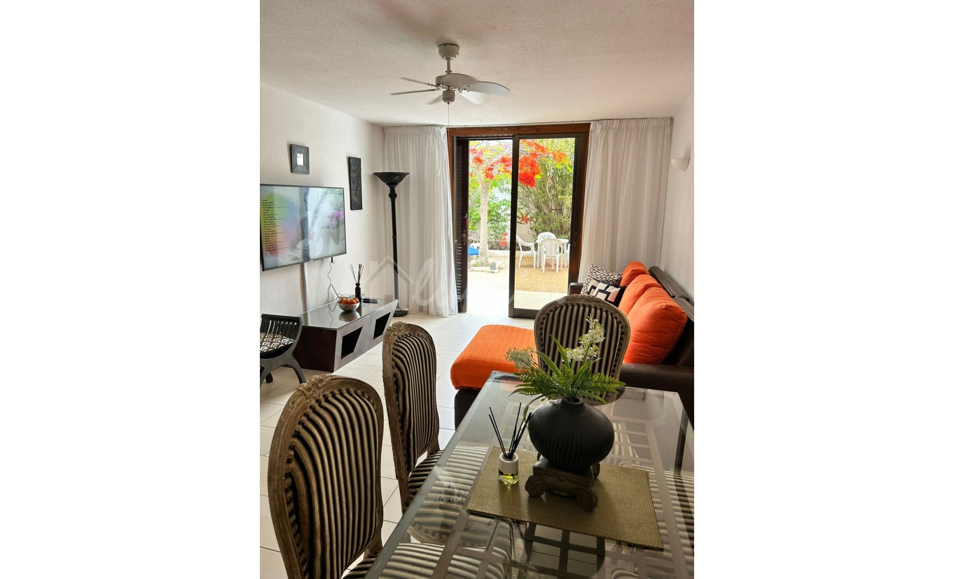 Prachtig appartement op de begane grond in het populaire complex Parque Santiago I, gelegen aan de boulevard van Playa de las Américas. De woning beschikt over 2 slaapkamers met inbouwkasten, 1 badkamer, een volledig uitgeruste open keuken en een ruime woon, eetkamer. Via schuifdeuren bereik je het royale terras met uitzicht op de tuin, ideaal om buiten te eten of gewoon te ontspannen. Het appartement wordt gemeubileerd verkocht en is instapklaar of direct te verhuren. Het complex beschikt over een lift, gemeenschappelijke parkeergelegenheid en is vlak gelegen, wat het zeer toegankelijk maakt. Rondom het complex zijn er tal van winkels, bars, restaurants en voorzieningen. Parque Santiago I staat bekend om zijn uitstekende reputatie en voorzieningen zoals een groot gemeenschappelijk zwembad, kinderbad, goed onderhouden tuinen, directe toegang tot het strand, poolbar en restaurant. Een uitstekende investering met hoog verhuurpotentieel.