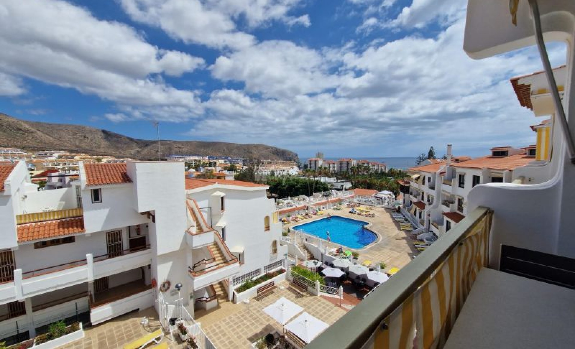 Licht appartement in het populaire complex Parque Margarita in Los Cristianos. De woning bestaat uit 1 slaapkamer met ingebouwde kasten en een badkamer. Er is een volledig uitgeruste Amerikaanse keuken en een woon-/eetkamer met schuifdeuren naar het terras, dat uitzicht biedt op het zwembad, de tuin en de zee. Het complex beschikt over een gemeenschappelijk zwembad en ligt op korte loopafstand van het strand en de promenade, waar u een breed aanbod aan restaurants, bars en winkels vindt.