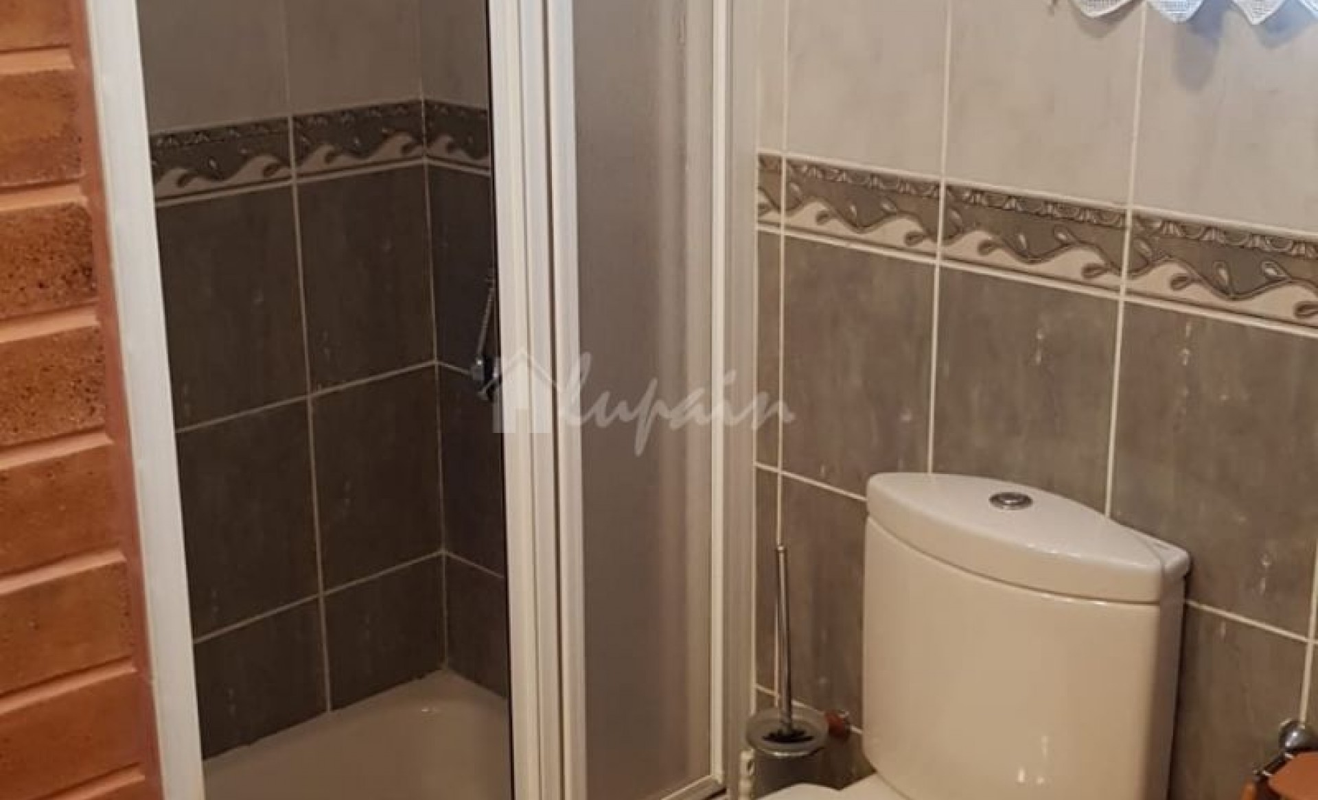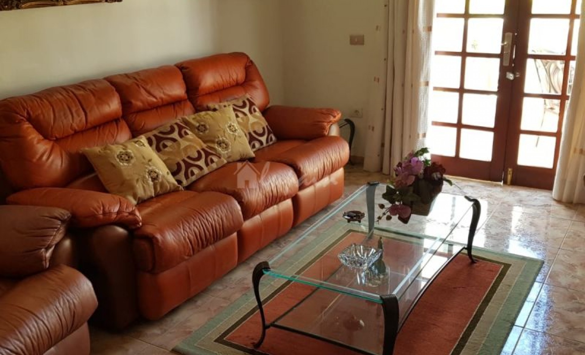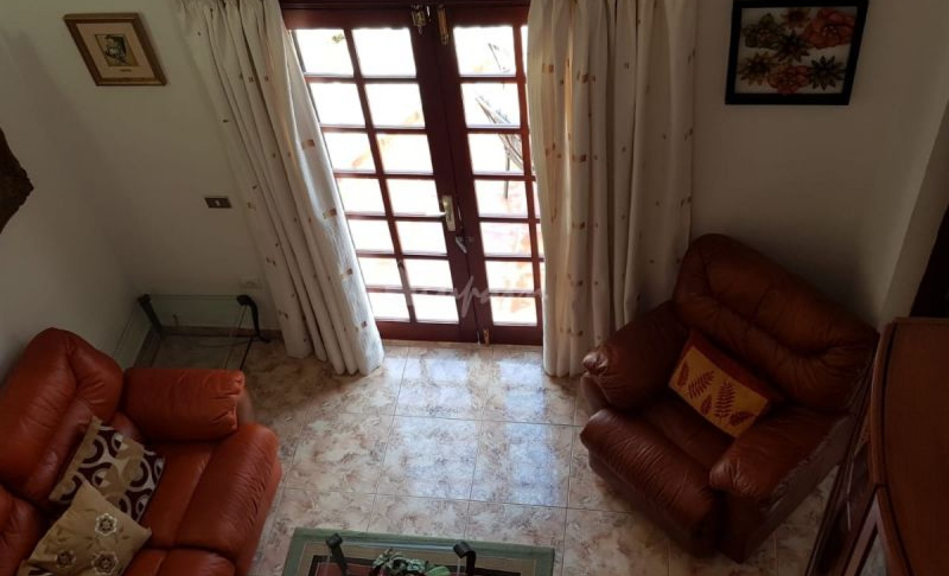 Charmante bungalow op de tweede lijn van de zee, gelegen in het gewilde complex Residencial Parque in San Eugenio. De woning is volledig gerenoveerd, ligt op een perceel van 200 m² en heeft een bebouwde oppervlakte van 104 m² verdeeld over twee verdiepingen. De tuin is prachtig aangelegd met allerlei fruitbomen. Op de begane grond bevindt zich een stijlvolle hal die toegang geeft tot de aparte volledig uitgeruste keuken. Er zijn drie ruime en lichte slaapkamers met ingebouwde kasten, waarvan één met en suite badkamer. De eetkamer biedt genoeg ruimte voor familiebijeenkomsten of etentjes, en de gezellige woonkamer geeft toegang tot een heerlijk terras dat in verbinding staat met de tuin. Ideaal om te ontspannen bij het geluid van de fontein, te genieten van de geur van fruitbomen of lekker te lezen in de zon. Op de bovenverdieping bevindt zich de hoofdslaapkamer, een tweede complete badkamer en een knusse leeshoek met toegang tot een tweede terras dat als solarium gebruikt kan worden. Het complex beschikt over een gemeenschappelijk zwembad, mooie tuinen, beveiligde toegang en gemeenschappelijke parkeergelegenheid. Perfecte ligging op slechts een paar stappen van het strand en de promenade, met alle voorzieningen en veel eet- en uitgaansgelegenheden in de buurt.