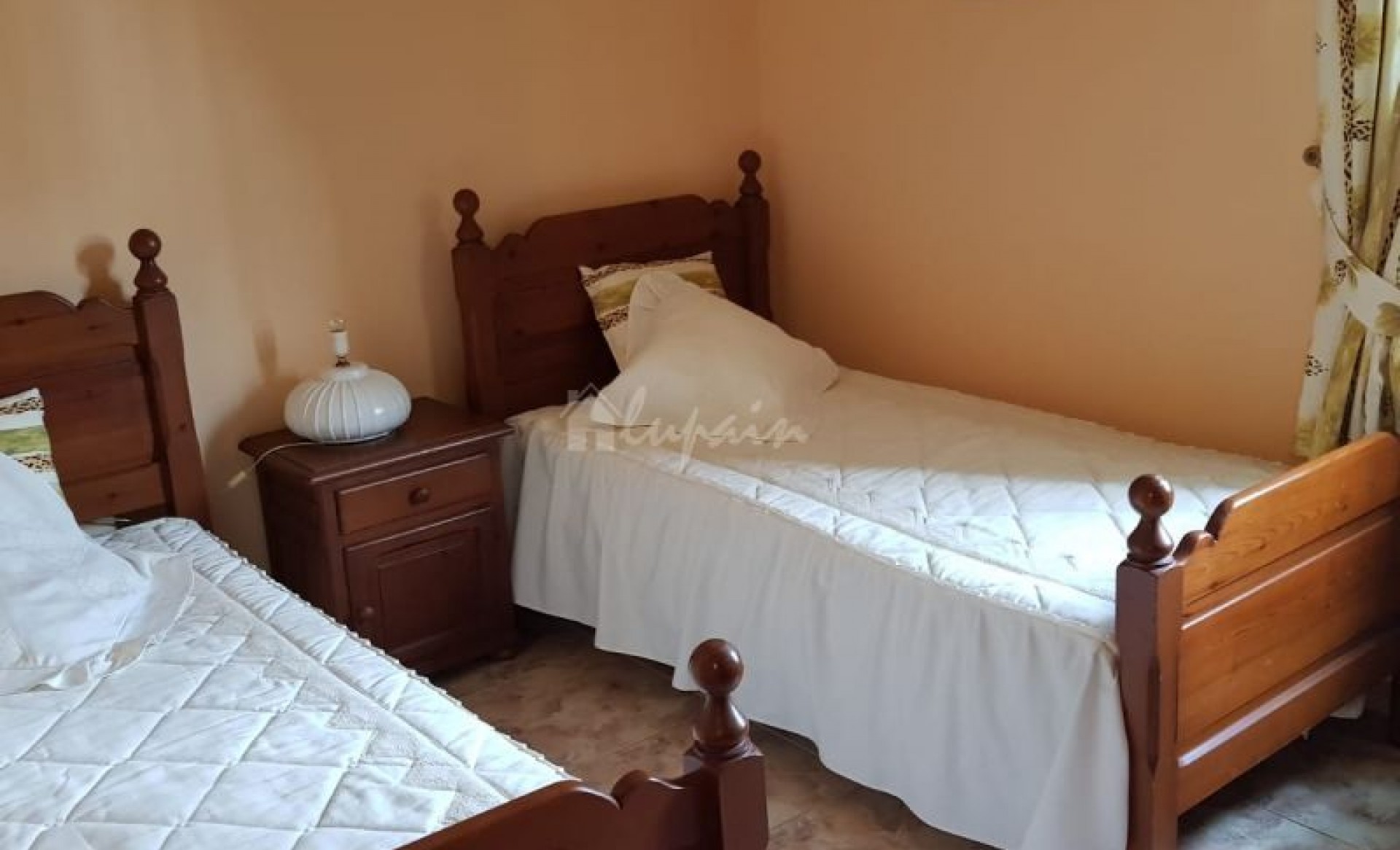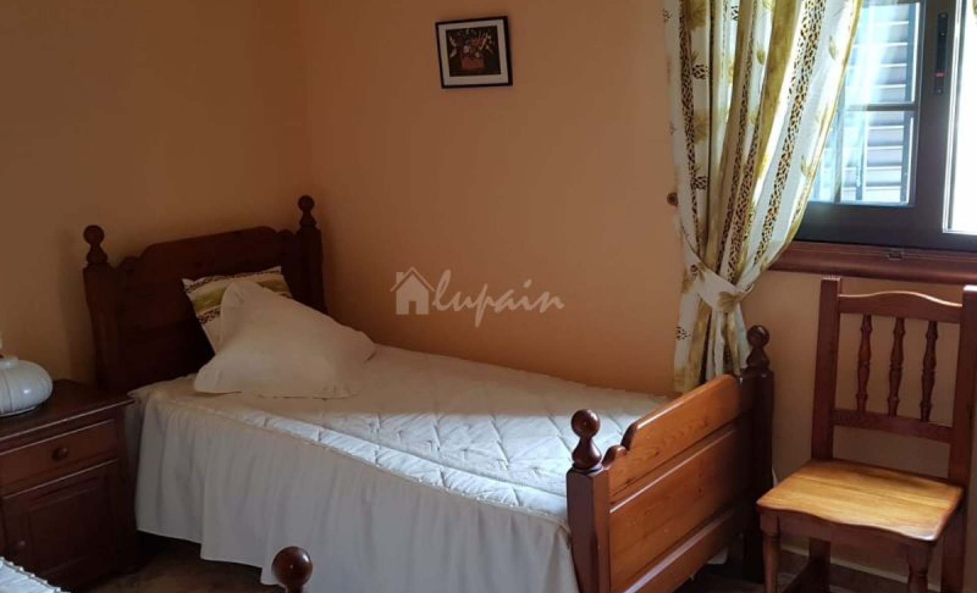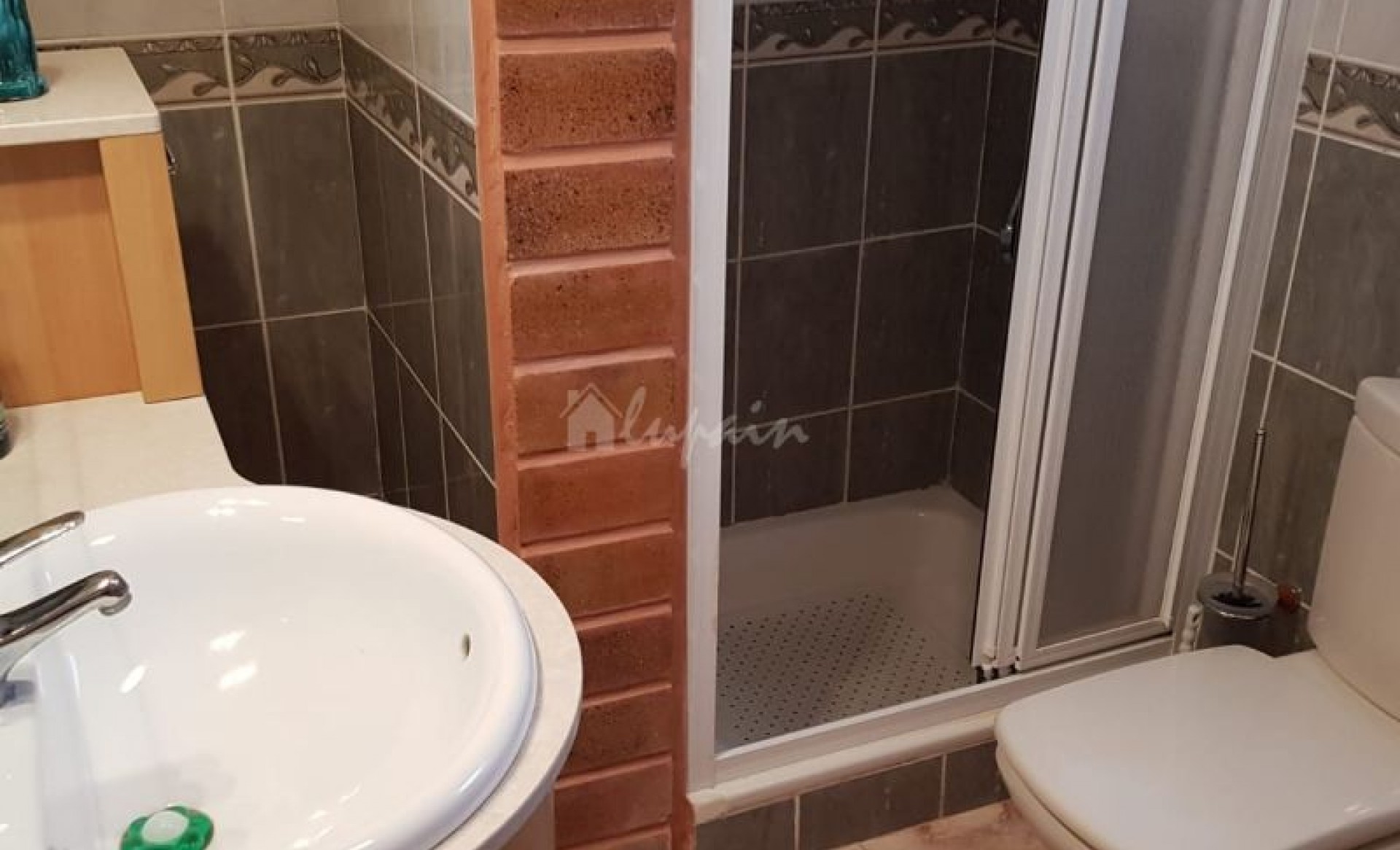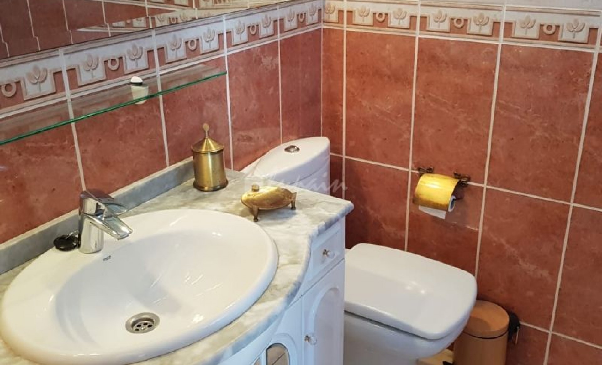 Charmante bungalow op de tweede lijn van de zee, gelegen in het gewilde complex Residencial Parque in San Eugenio. De woning is volledig gerenoveerd, ligt op een perceel van 200 m² en heeft een bebouwde oppervlakte van 104 m² verdeeld over twee verdiepingen. De tuin is prachtig aangelegd met allerlei fruitbomen. Op de begane grond bevindt zich een stijlvolle hal die toegang geeft tot de aparte volledig uitgeruste keuken. Er zijn drie ruime en lichte slaapkamers met ingebouwde kasten, waarvan één met en suite badkamer. De eetkamer biedt genoeg ruimte voor familiebijeenkomsten of etentjes, en de gezellige woonkamer geeft toegang tot een heerlijk terras dat in verbinding staat met de tuin. Ideaal om te ontspannen bij het geluid van de fontein, te genieten van de geur van fruitbomen of lekker te lezen in de zon. Op de bovenverdieping bevindt zich de hoofdslaapkamer, een tweede complete badkamer en een knusse leeshoek met toegang tot een tweede terras dat als solarium gebruikt kan worden. Het complex beschikt over een gemeenschappelijk zwembad, mooie tuinen, beveiligde toegang en gemeenschappelijke parkeergelegenheid. Perfecte ligging op slechts een paar stappen van het strand en de promenade, met alle voorzieningen en veel eet- en uitgaansgelegenheden in de buurt.
