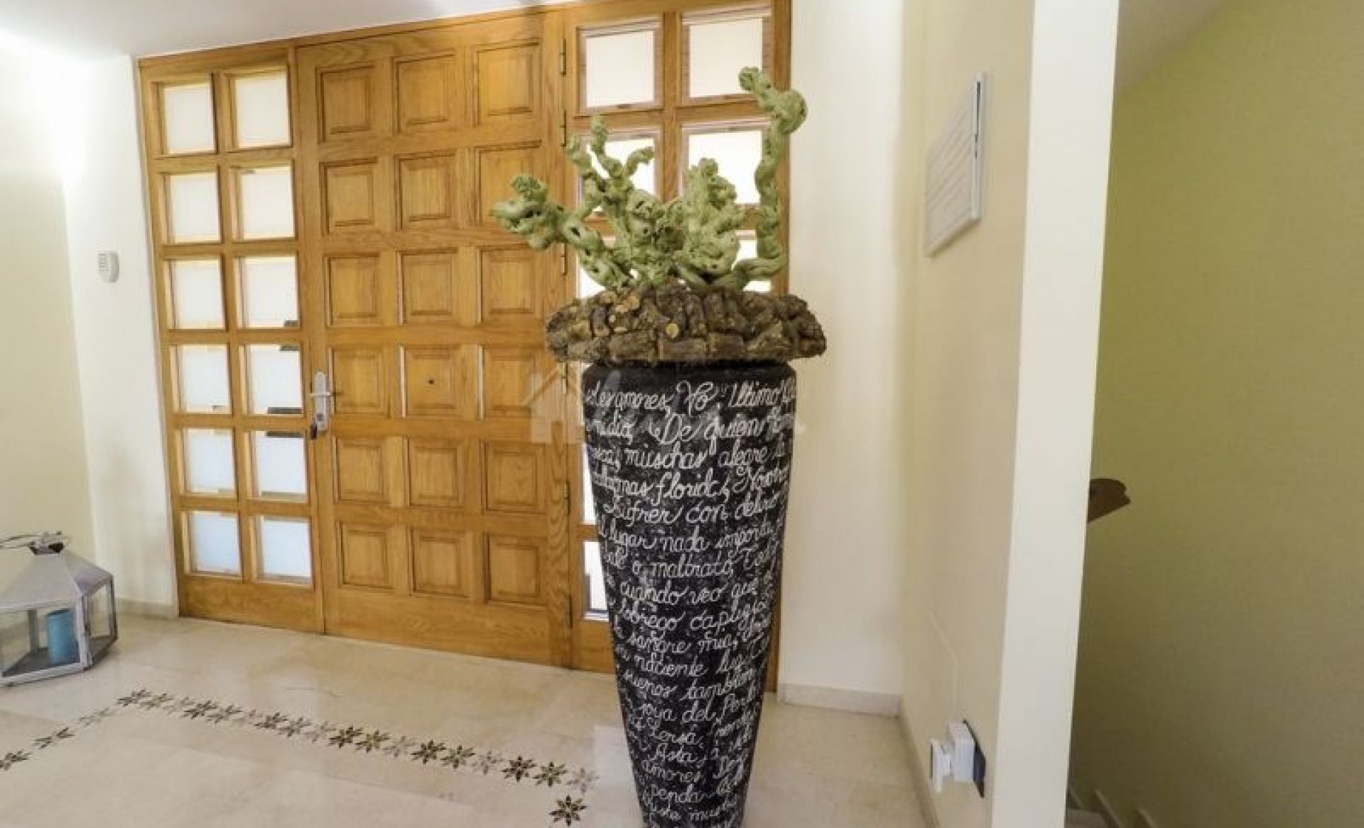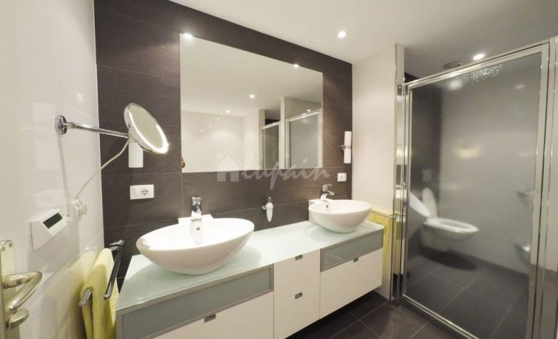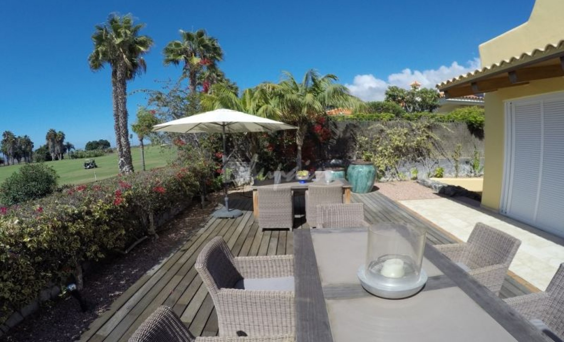 Prachtige villa met uitzicht op zee en de golfbaan, gelegen in een van de meest gewilde gebieden van Zuid-Tenerife. Deze stijlvolle woning ligt in een rustige straat op slechts 2 minuten van het charmante vissersdorpje La Caleta, bekend om zijn restaurants aan zee. Via de ruime hal of de ondergrondse garage bereikt u de begane grond van de villa. Hier bevindt zich een volledig uitgeruste keuken met aangrenzende wasruimte. Vanuit de keuken komt u in de eetkamer en woonkamer, met grote schuiframen die toegang geven tot het prachtige buitengedeelte. Met een ingebouwde barbecue, zwembad met buitendouche en ruime terrassen is dit de ideale plek om te ontspannen. Het uitzicht op de golfbaan en de oceaan is gegarandeerd en biedt volledige privacy. Deze verdieping heeft tevens drie slaapkamers met en-suite badkamers en een gastentoilet. Twee van de slaapkamers hebben directe toegang tot het zwembad. De master bedroom beschikt over een terras, badkamer met douche en een ruime inloopkast. Via een brede trap daalt u af naar een mezzanine waar zich de grote garage en technische ruimte bevinden. Verder beneden vindt u nog drie slaapkamers, twee badkamers, een gastentoilet en een multifunctionele ruimte. De golfbaan van Costa Adeje is internationaal bekend en ligt vlak bij de kust. De stranden en commerciële centra zijn slechts enkele minuten rijden.