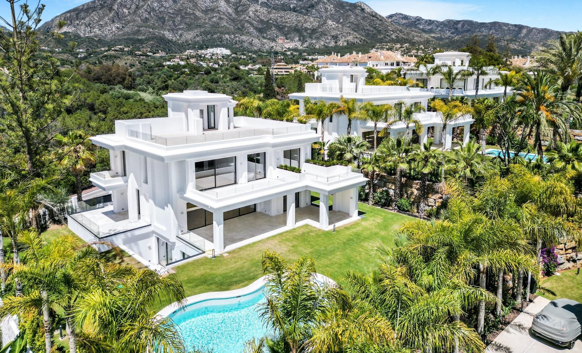 Nieuwbouw luxe villa's in Lomas de Marbella Club Gelegen in Lomas de Marbella Club, een prestigieuze urbanisatie aan de Golden Mile. Het is een zeer rustige enclave met directe toegang vanaf de AP-7 snelweg naar alle bezienswaardigheden in de stad en aan de Costa del Sol. De bevoorrechte locatie ligt op 10 minuten van het centrum van Marbella, 40 km van de internationale luchthaven van Malaga, 50 km van het AVE-station en 85 km van de luchthaven van Gibraltar. De omheinde urbanisatie Las Lomas del Marbella Club wordt beschouwd als elite en is een van de beste adressen in Zuid-Spanje.Het is een van de populairste luxe woonwijken in Marbella, met behoud van zijn elegante en originele uitstraling, met ruime en perfecte groene zones, 24-uurs beveiliging, levenskwaliteit en architectuur.De ligging ten noorden van de Golden Mile, tegenover de Puente Romano en vlakbij de Koninklijke Moskee met zijn indrukwekkende Andalusische Arabische architectuur, maakt het een bevoorrechte omgeving. Deze urbanisatie verwelkomt allerlei lokale en internationale beroemdheden, Spaanse edelen en Europese elites en is een zeer exclusieve urbanisatie met de duurste villa's en herenhuizen in de omgeving. Aan de andere kant ligt de urbanisatie vlakbij een mythisch 5* hotel, Michelin sterren restaurants, talloze golfbanen en internationale scholen, Marbella en Puerto Banús. Een grote verscheidenheid aan modeboetieks, restaurants en uitgaansgelegenheden. Vier villa's zijn ontworpen volgens de hoogste normen van kwaliteit en luxe, met energiesystemen en kenmerken van de meest avant-gardistische architectuur. Schoonheid, elegantie en comfort kenmerken deze villa's op het zuiden, die er zowel klassiek als modern uitzien, met superieure kwaliteiten en uitzonderlijke materialen.Elke villa is goed geproportioneerd qua indeling, verdeeld over 3 verdiepingen en een dakterras om een prachtig smaakvol verblijf met 6 slaapkamers en meerdere ontspanningsruimtes te creëren.Als je de villa binnenkomt, zie je op de hoofdverdieping een grote ruimte die is verdeeld in verschillende ruimtes. De volledig uitgeruste keuken met ultramoderne apparatuur heeft een op maat gemaakt eiland.De bovenverdieping bestaat uit 3 slaapkamers met badkamers en kleedkamers en-suite. De hoofdslaapkamer met toegang tot het grote terras heeft een spectaculair uitzicht op het zwembad en de zee.De aantrekkelijke kelder heeft parkeerruimte voor 3 auto's, een wasruimte, een vuile keuken en directe lifttoegang tot de keuken op de hoofdverdieping. Bovendien zijn er op deze verdieping nog 3 slaapkamers die perfect zijn voor gasten. KenmerkenKlimaatbeheersing: Airconditioning, Centrale verwarming, Open haard, Vloerverwarming, Vloerverwarming in badkamersStaat van onderhoud: Uitstekend, GloednieuwKenmerken: Overdekt Terras, Domotica, Dubbele beglazing, Ingebouwde kasten, Jacuzzi, Lift, Marmeren vloeren, Dichtbij transport, Privé terras, Solarium, Houten vloeren, Dichtbij voorzieningen, Wasruimte, Kelder, Parketvloeren, Niet overdekt Terras, Automatisch Irrigatiesysteem, Glazen deurenKeuken: Volledig ingericht, Open keukenZwembad: Verwarmd, ZoutwaterzwembadOmgeving: Dichtbij Golf, Dichtbij Haven, Dichtbij Scholen, Dichtbij Zee, Dichtbij Winkels, Dichtbij StadBeveiliging: 24 uurs beveiliging, AlarmsysteemUitzicht: Tuin, Berg, Panoramisch, Zwembad, Uitzicht op Zee