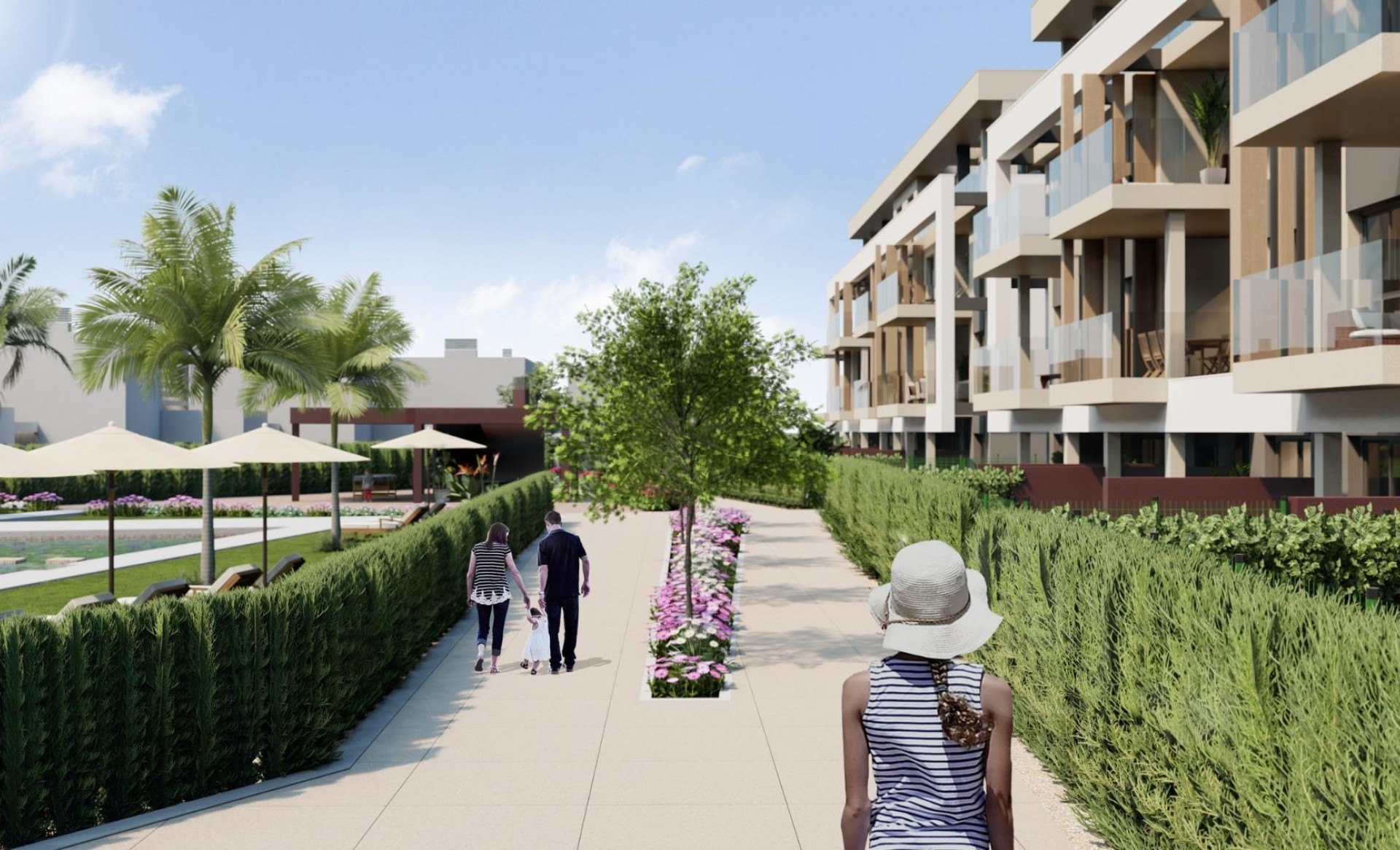 Nieuwbouw wooncomplex bestaande uit 42 luxe appartementen en penthouses met 2 en 3 slaapkamers, 2 badkamers, open keuken met ruime woonkamer, inbouwkasten en terrassen. Appartementen op de begane grond met privétuin, appartementen op de middelste verdiepingen met terras en penthouses met een groot privéterras. Deze exclusieve ontwikkeling heeft een aangelegde gemeenschappelijke ruimte met een prachtig eigentijds zwembad, een sociale club en groene zones. Alle appartementen hebben een ondergrondse parkeergarage en berging. Gelegen in een omheind privéresort, met een hoofdingang en 24 uur bewaking. Het resort is ontworpen rond een indrukwekkend groengebied van 126.000 m2. Het bestaat uit wandel- en fietspaden, sportfaciliteiten, paddle- en tennisbanen, een minigolfbaan, tuinen, hondenparken, recreatiegebieden, clubhuis.... Ook in het centrale gebied ligt het juweel van het resort, een kristalhelder kunstmatig meer van bijna 17.000 m2 wateroppervlak, omringd door witte zandstranden en palmbomen, dat een stukje Caribisch gebied naar de regio Murcia brengt. Er zijn 2 eilanden in het meer, waarvan er één een eigen bar heeft, en er zijn ook "strand Chiringuitos" verspreid over het meer. Het resort is strategisch gelegen op minder dan 4 km van het strand en de stad Los Alcázares, waar je verschillende watersporten kunt beoefenen, omringd door verschillende golfbanen en de stad Cartagena op minder dan 15 minuten rijden en 22 km van de luchthaven van Murcia, waardoor een breed cultureel, gastronomisch en sportief aanbod binnen handbereik ligt.